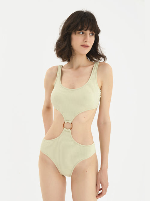Sexy Black One Piece Textured Swimsuit with Plunging Scallop and Waist Cutouts