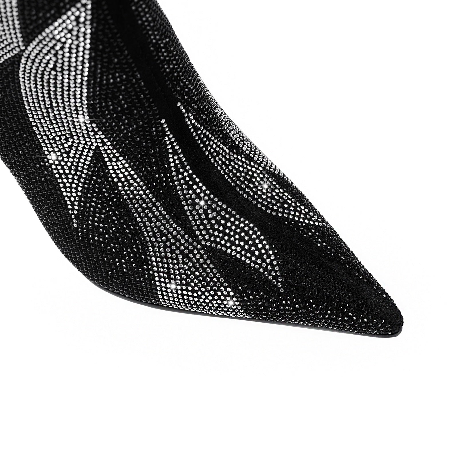 - The sculpted pointed toe sharpens the silhouette and elongates the leg for an ultra-glam finish