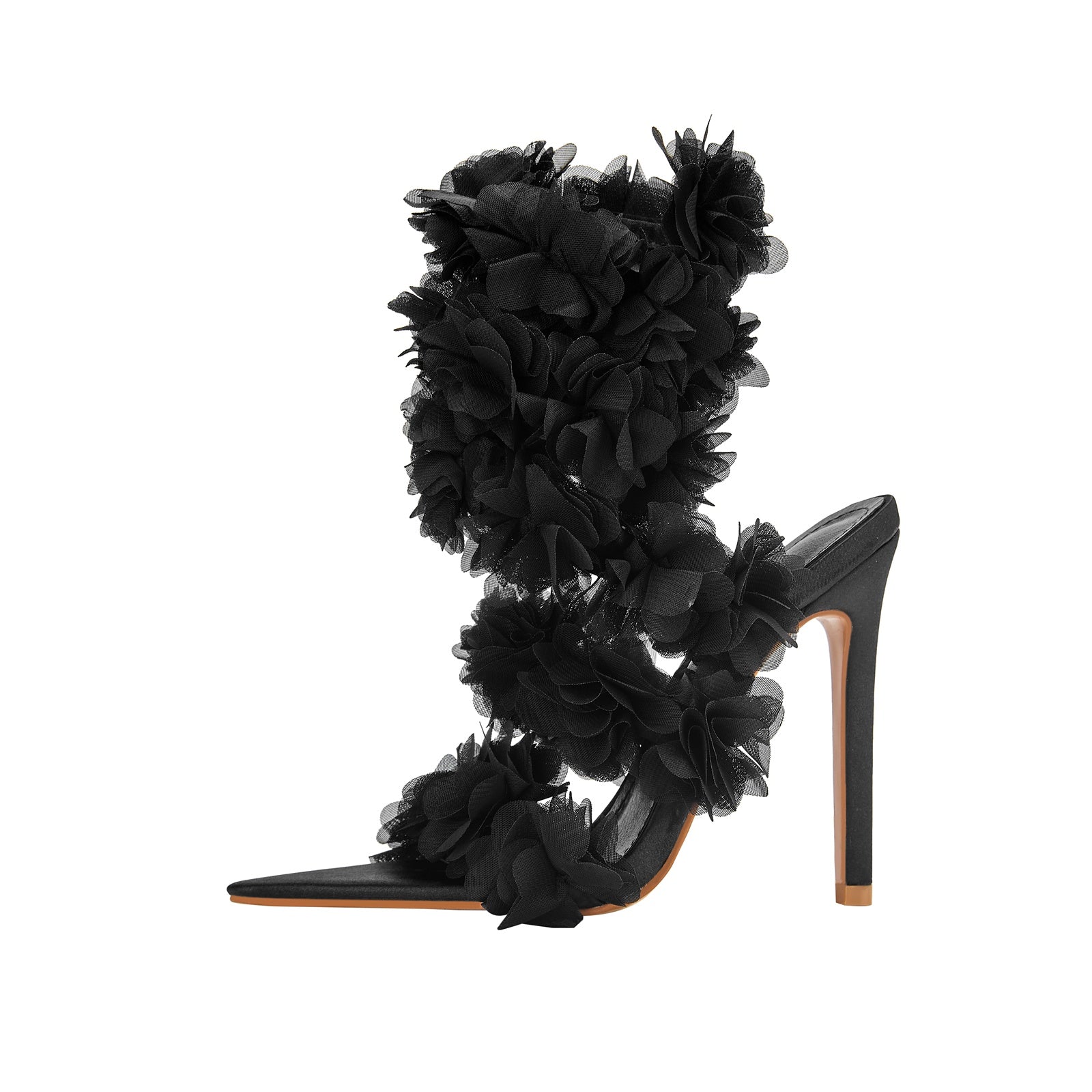 Step into a dreamy garden of glamour with these Black Furry Strappy Sandals where every step feels like a stroll through a field of blooming petals. Wrapped in layers of soft, fluttery florals, these heels are made for the girl who loves to twirl, sparkle, and turn heads wherever she goes.
