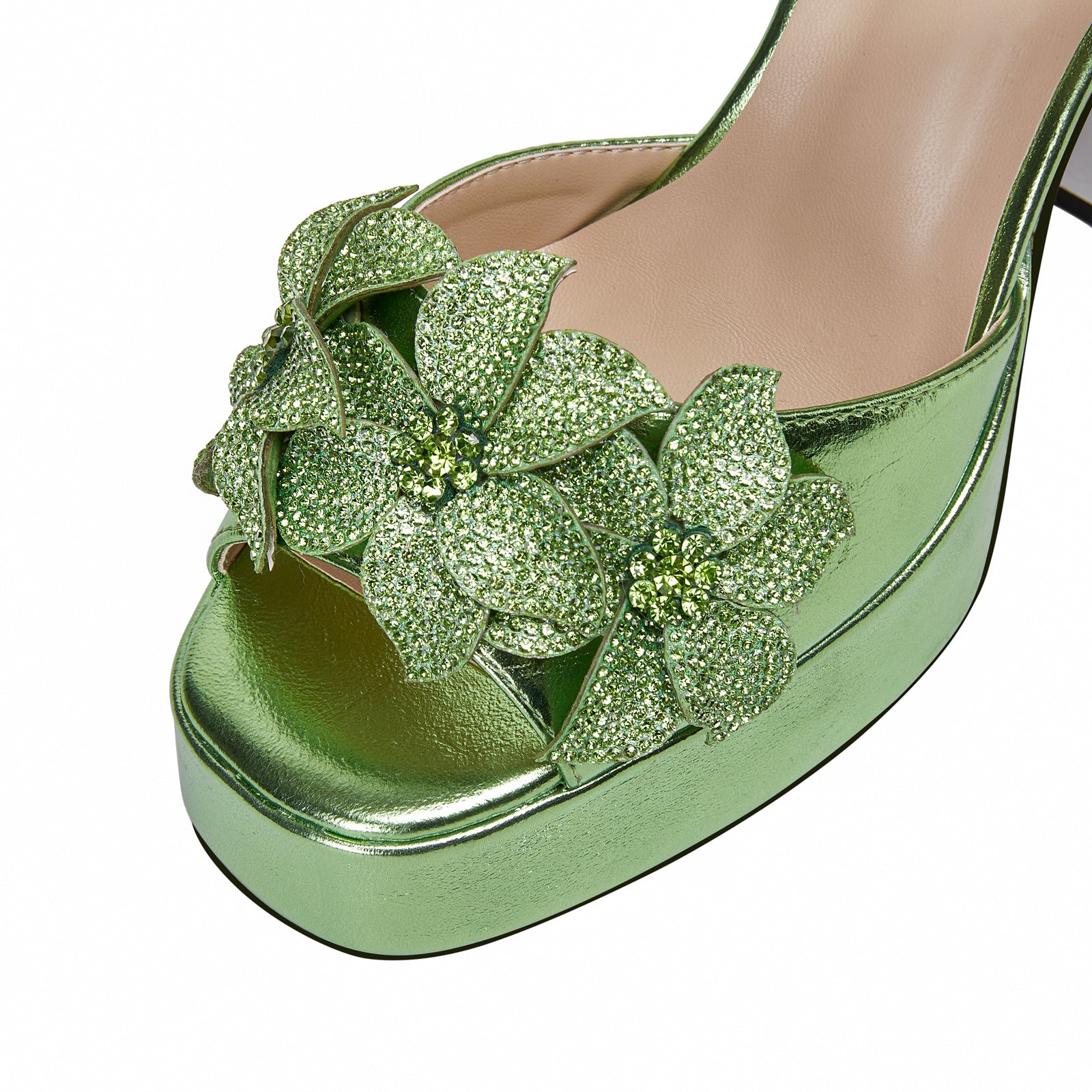 Enter your fairycore era with the Charming Floral Open-Toe Gem-Encrusted Heel Sandals, a whimsical dream wrapped in metallic magic. With sparkling flower appliqués and dazzling crystal heels, these sandals are pure garden-party glamour with a playful punch.