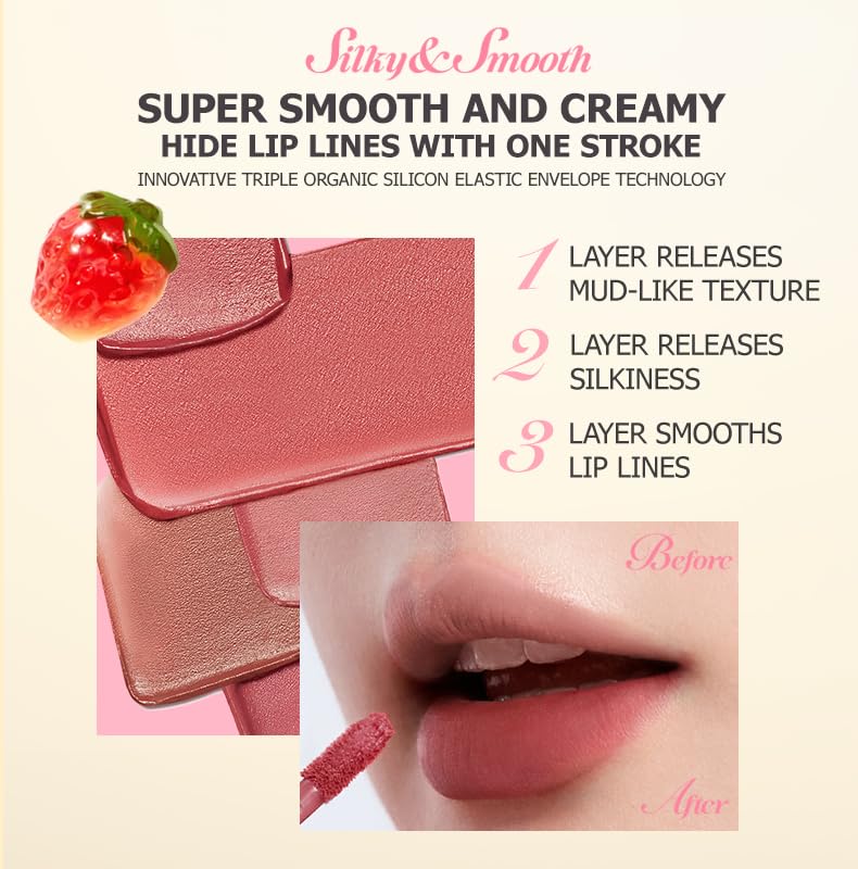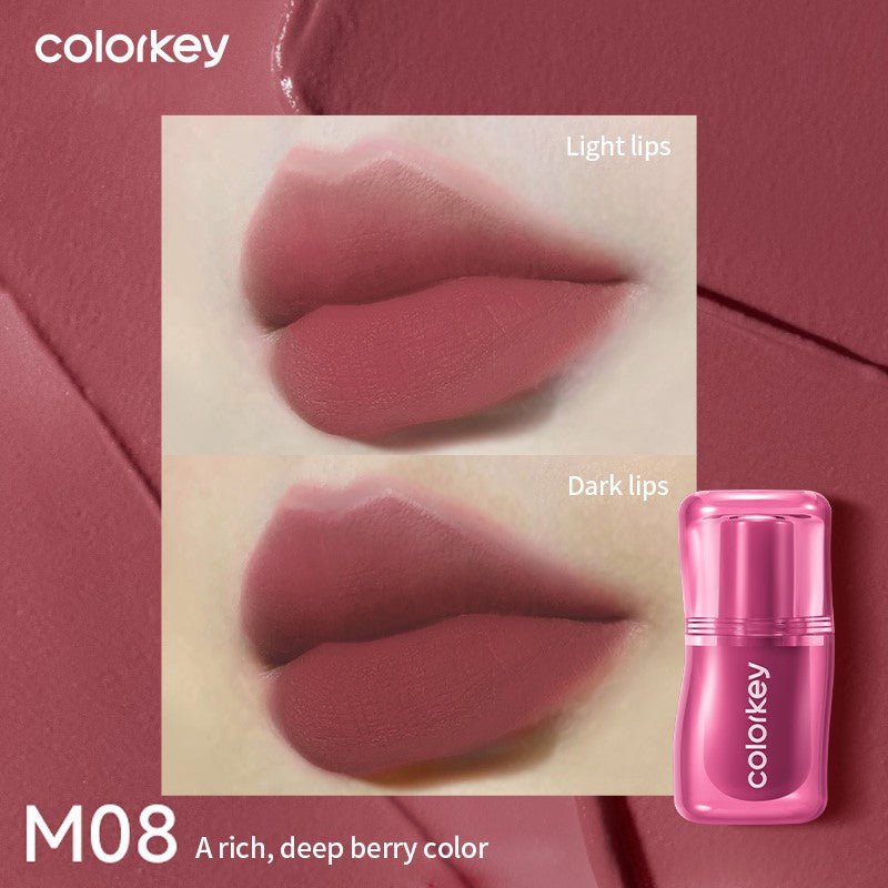 Create soft, velvety lips with Colorkey Milk Fog Lip Mud, a silky matte lip product designed to deliver rich color with an airy, cloud-like texture. Inspired by the delicate softness of milk fog, this lip mud glides smoothly across the lips and melts instantly upon application, forming a lightweight veil of color that feels comfortable and breathable throughout the day. The creamy lip mud formula blends effortlessly to create a smooth, soft-focus matte finish that gently blurs lip lines and enhances the natural shape of your lips. Unlike traditional matte lipsticks that may feel dry or heavy, Colorkey Milk Fog Lip Mud offers a silky and flexible texture that keeps lips comfortable while delivering a refined velvet matte effect. Enriched with moisturizing ingredients and nourishing oils, the formula helps keep lips hydrated and soft during extended wear. It prevents dryness and flaking while maintaining a smooth and plump appearance. The innovative essence-to-matte technology allows the product to glide smoothly onto the lips before transforming into a soft velvet matte finish that looks elegant and natural. The highly pigmented formula provides buildable color intensity, allowing you to customize your lip look easily. Apply a thin layer for a natural everyday lip, or build up the color for a richer and more dramatic makeup look. The precision applicator makes outlining and filling the lips simple and accurate, making it easy for beginners and makeup lovers alike to achieve beautifully defined lips. The Colorkey Milk Fog Lip Mud collection offers a range of trendy shades designed to complement different skin tones and makeup styles, making it perfect for everyday wear, office makeup, or bold statement looks.