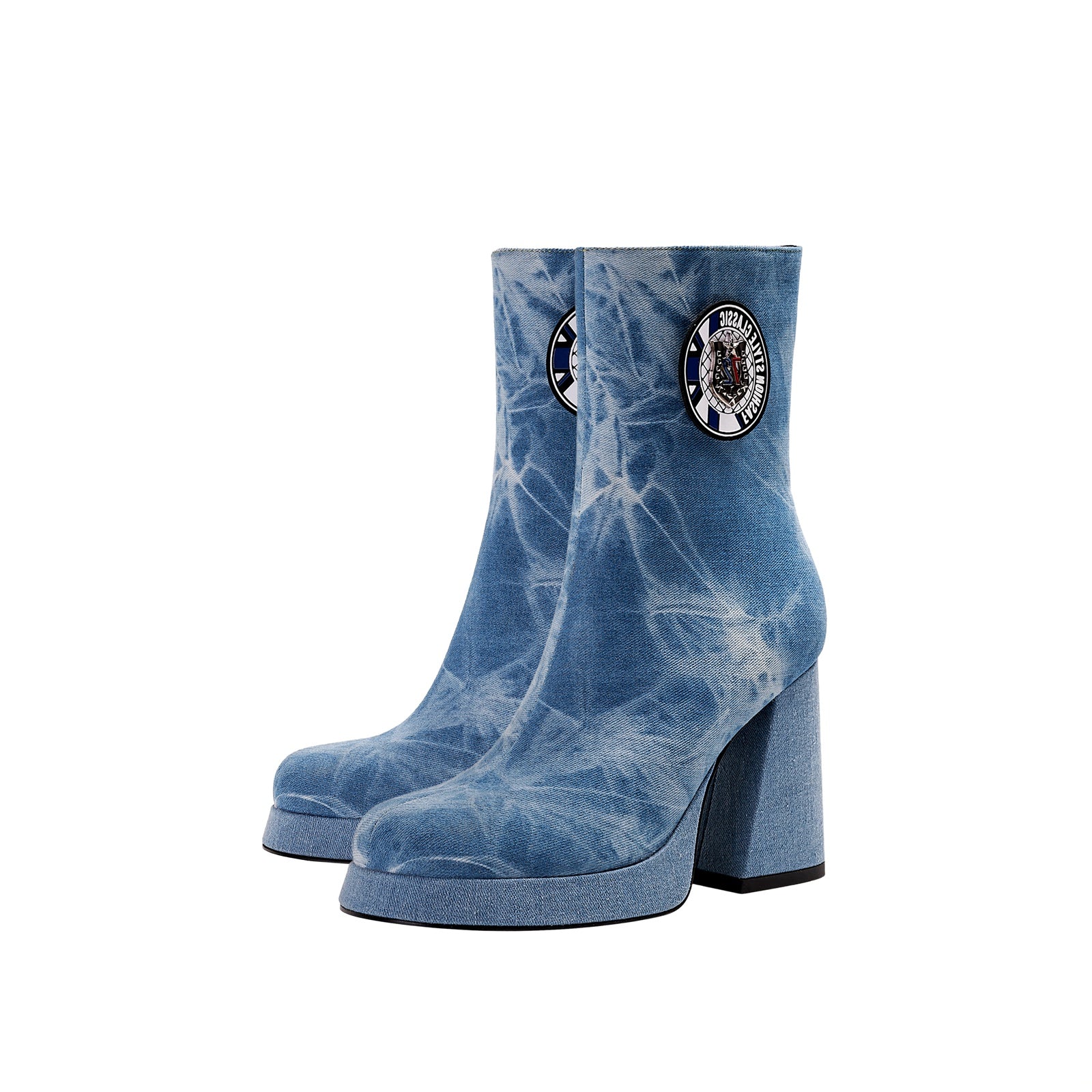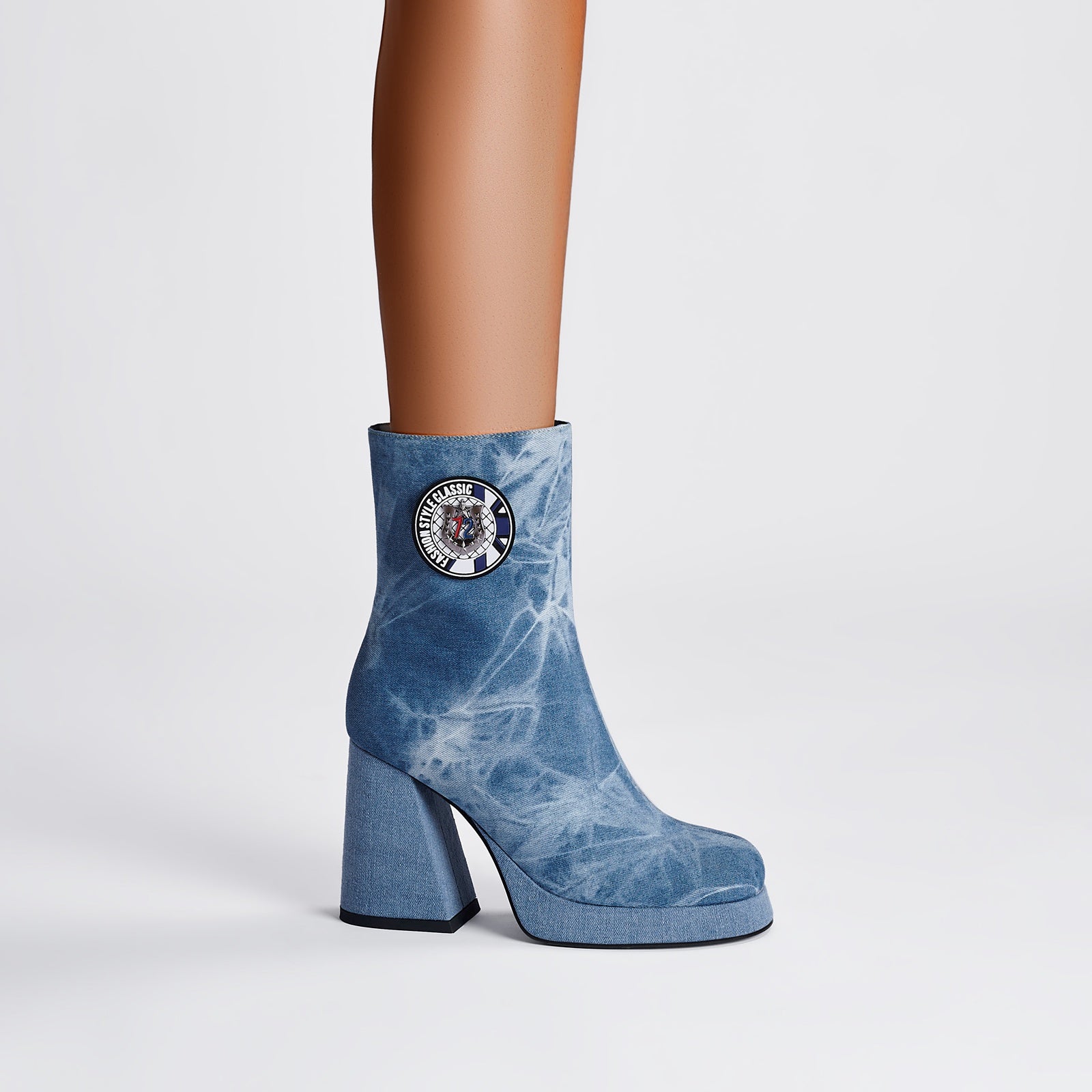Retro edge meets everyday comfort in the Comfortable Side Zip Denim Ankle Boots, a playful nod to '70s rock ‘n’ roll with a modern twist. Featuring a tie-dye denim finish, chunky block heel, and patchwork emblem detail, this boot is made for those who like their fashion loud, nostalgic, and effortlessly cool.