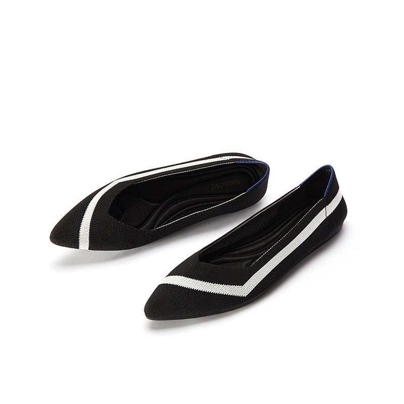 These pointed-toe flats feature a high-elastic heart-shaped insole with Ortholite and activated carbon for shock absorption, cushioning, and odor control. The durable rubber outsole offers slip resistance and flexibility, perfect for all-day wear. Plus, they're ultra-lightweight, weighing as little as two eggs per shoe, ensuring a comfortable experience. Get your Comfortable Woven Striped Pointed Toe Flats from MALOVE MZ today!