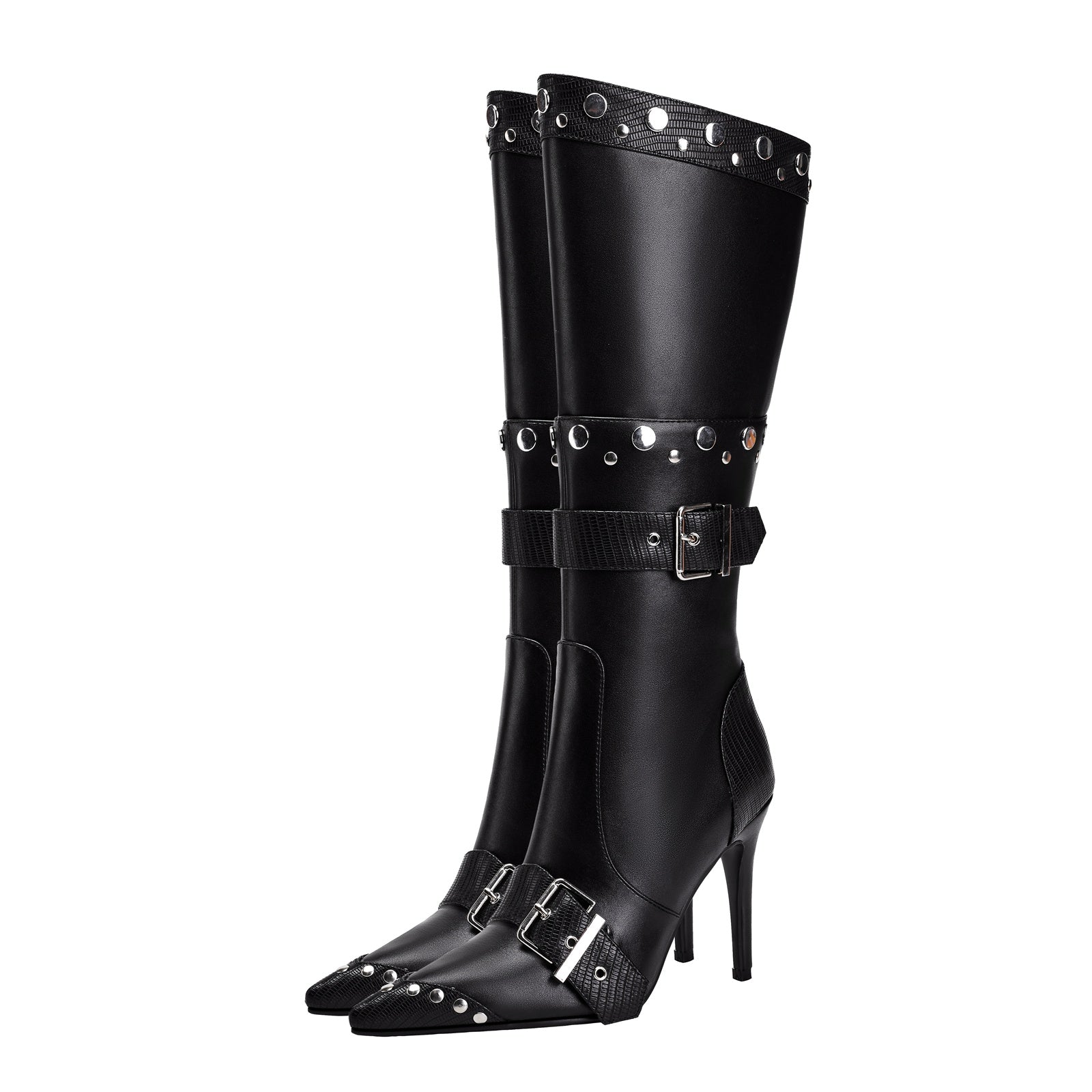 Style these sultry, black, pointed toe boots for women with a thigh-grazing mini and a leather corset for a head-to-toe femme fatale look, or pair them with fishnet tights and a body-hugging slip dress for maximum impact. Whether you want ankle boots or knee-high boots, these Convertible Double Buckle Black Pointed Toe Boots got you covered.