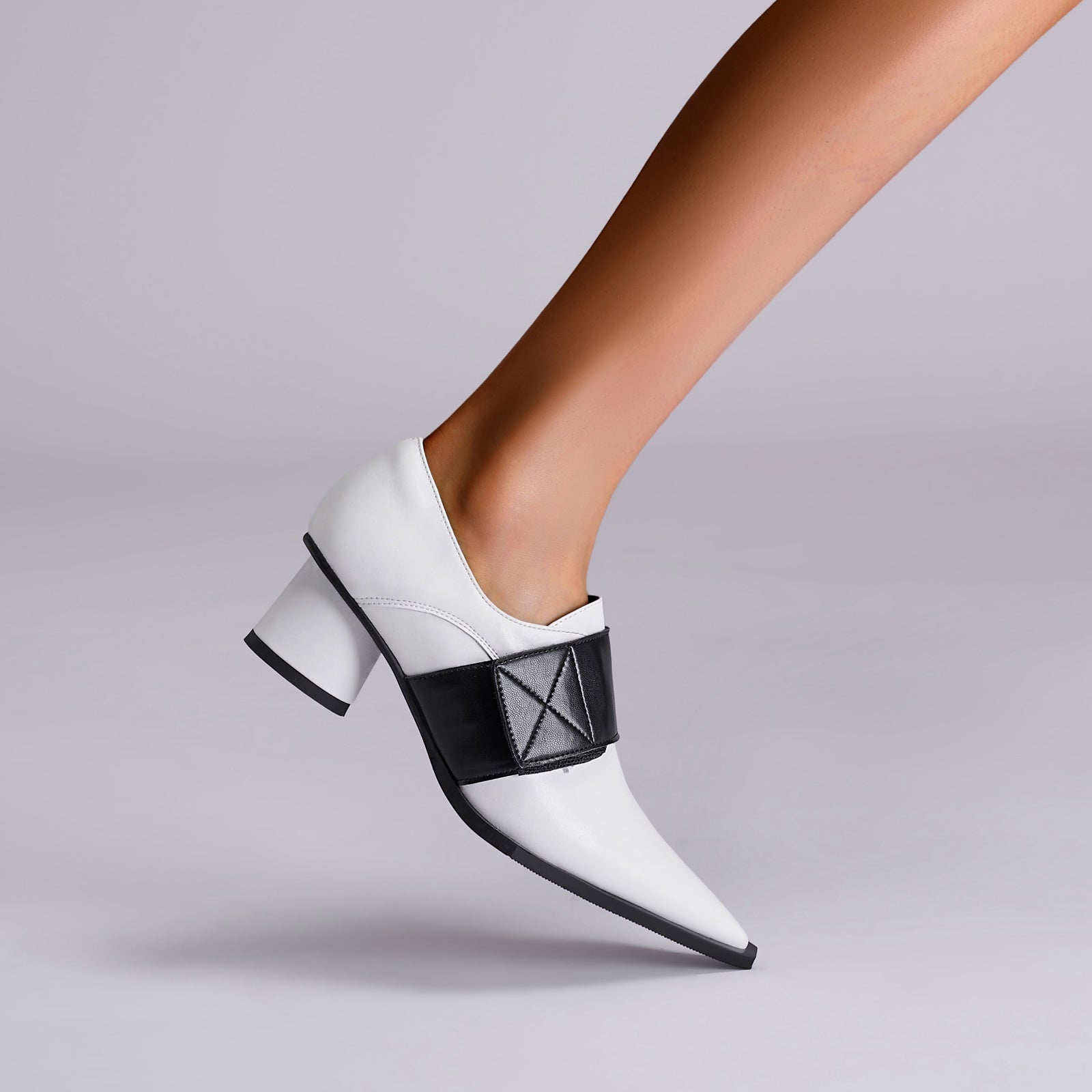 Command the boardroom and the boulevard in the Corporate Pointed Toe Leather Loafers, a striking blend of classic tailoring and avant-garde flair. With sharp lines, bold contrast, and a confident heel, this modern loafer redefines power dressing for the woman who leads with style.