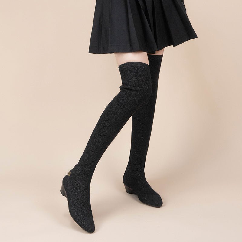 Designed for daily wear, the low 3.7cm heart-shaped wedge heel offers stability and subtle lift, making them perfect for long walks, commuting, or casual outings. The 3D seamless knitting technology ensures a second-skin fit, while the shock-absorbing wool insole keeps your feet cozy and supported all day long. Whether you’re strolling through the countryside or tackling the city streets, this pair is one of the best women's over-the-knee boots you can find. Get the Country Low Heel Stretch Over-the-Knee Boots from MALOVE MZ by 0cm.