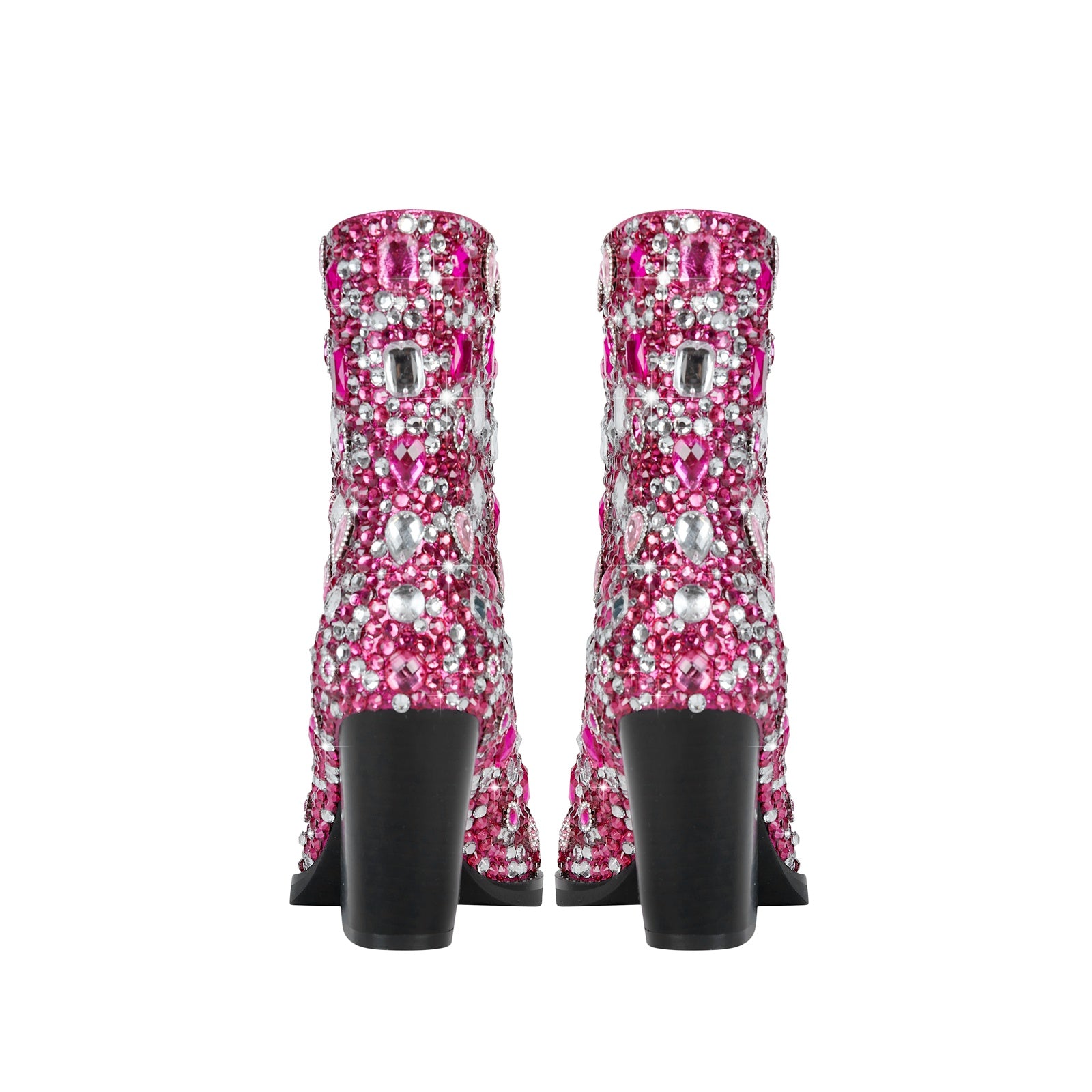 Giddy up, glam girl! Because the Country Princess Pink Embellished Ankle Boots are here to turn the rodeo into a runway. Covered in a dazzling array of rhinestones, gems, and glitz, this boot is a full-on sparkle statement for the cowgirl who doesn’t believe in blending in.