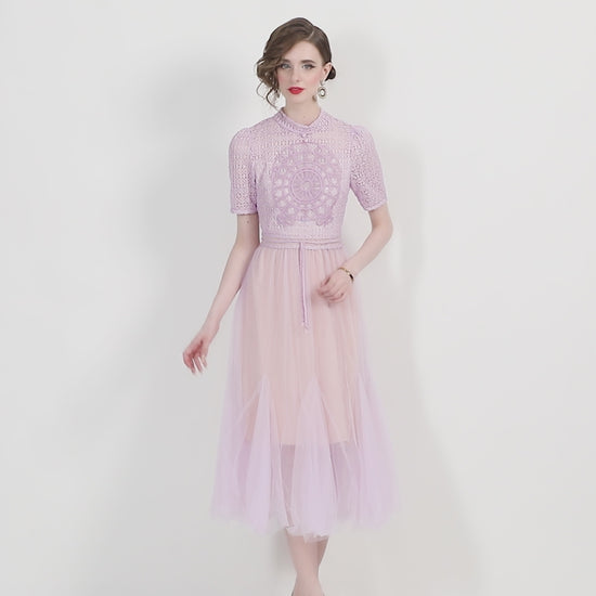 In a season where elegance takes a softer turn, the Delicate Mesh High Waisted Midi Dress emerges as the statement piece for the woman who commands attention with grace. Equal parts poised and poetic, this lavender dream redefines femininity with intricate textures, fluid lines, and a quiet sense of power.