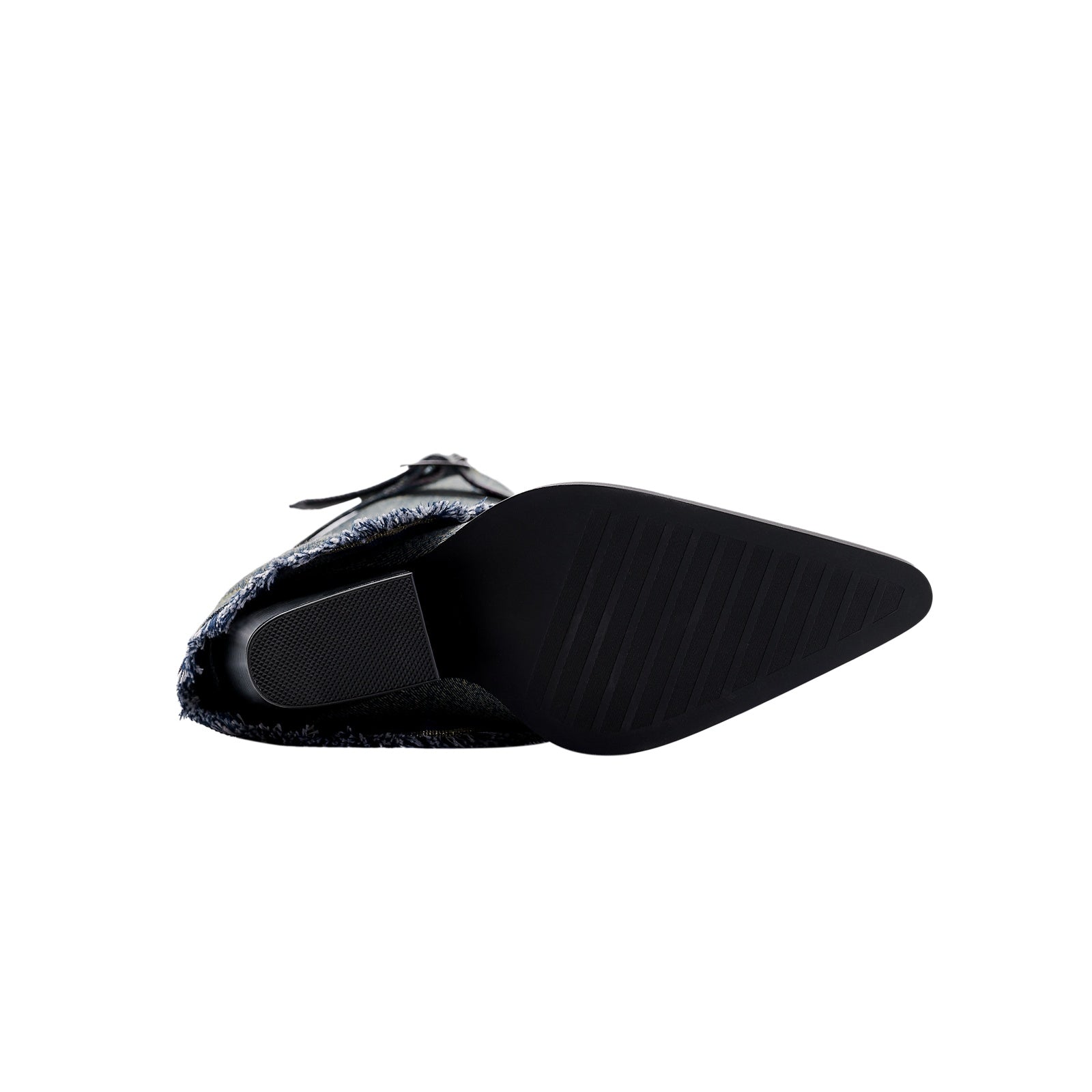 - The denim upper delivers laid-back texture with casual edge, reimagining jeans in sculptural boot form