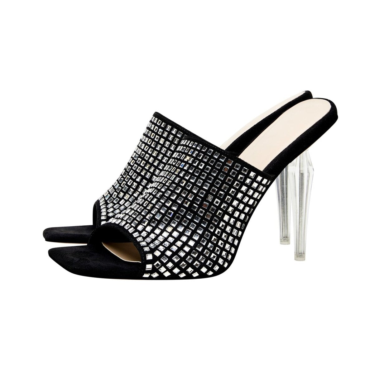 Studio sparkle meets minimalist cool in the Disco Mirror Mosaic Stiletto Mules, a glamorous slip-on that turns any moment into a main event. With reflective mosaic embellishments and a sculptural clear heel, this pair delivers disco-era dazzle with a contemporary twist.