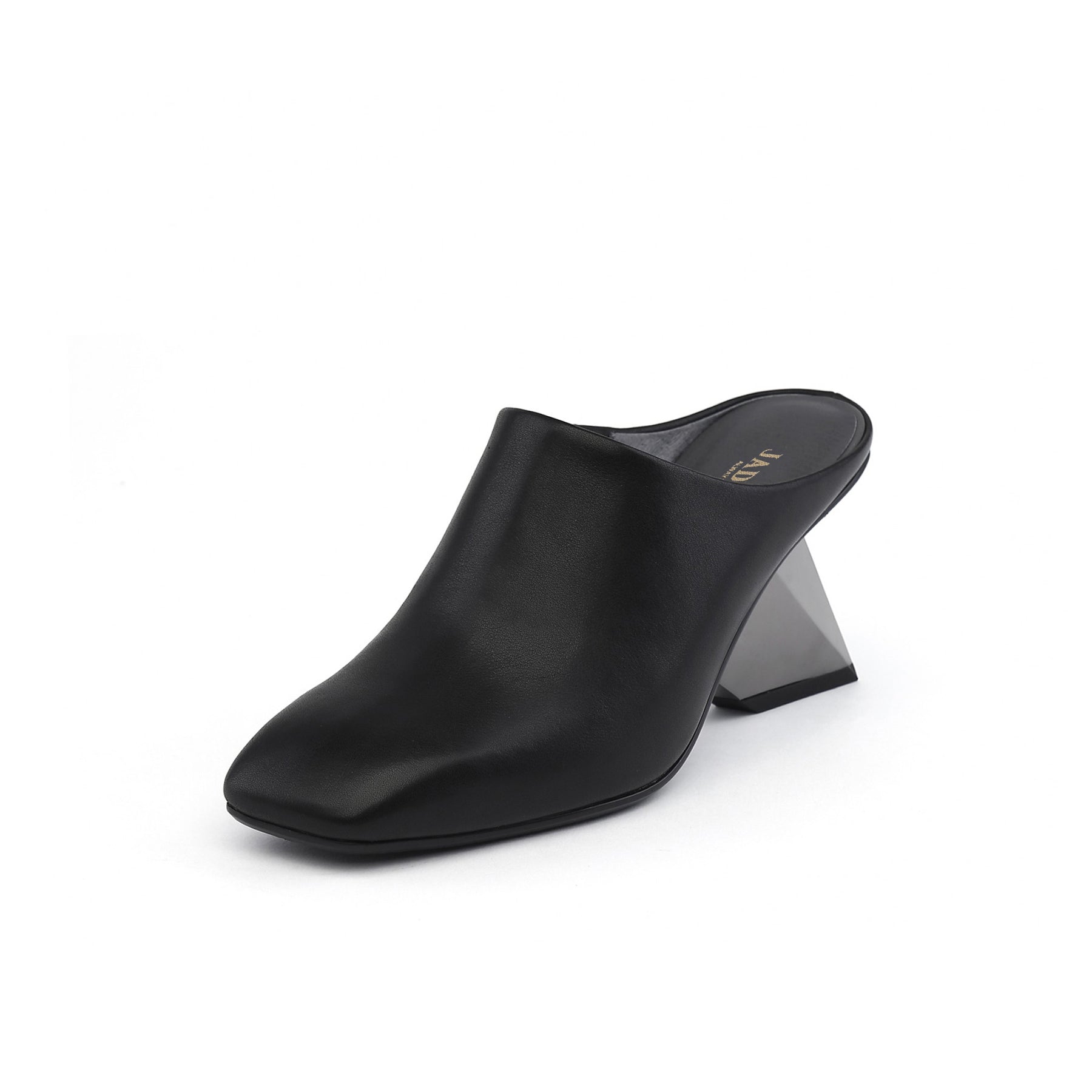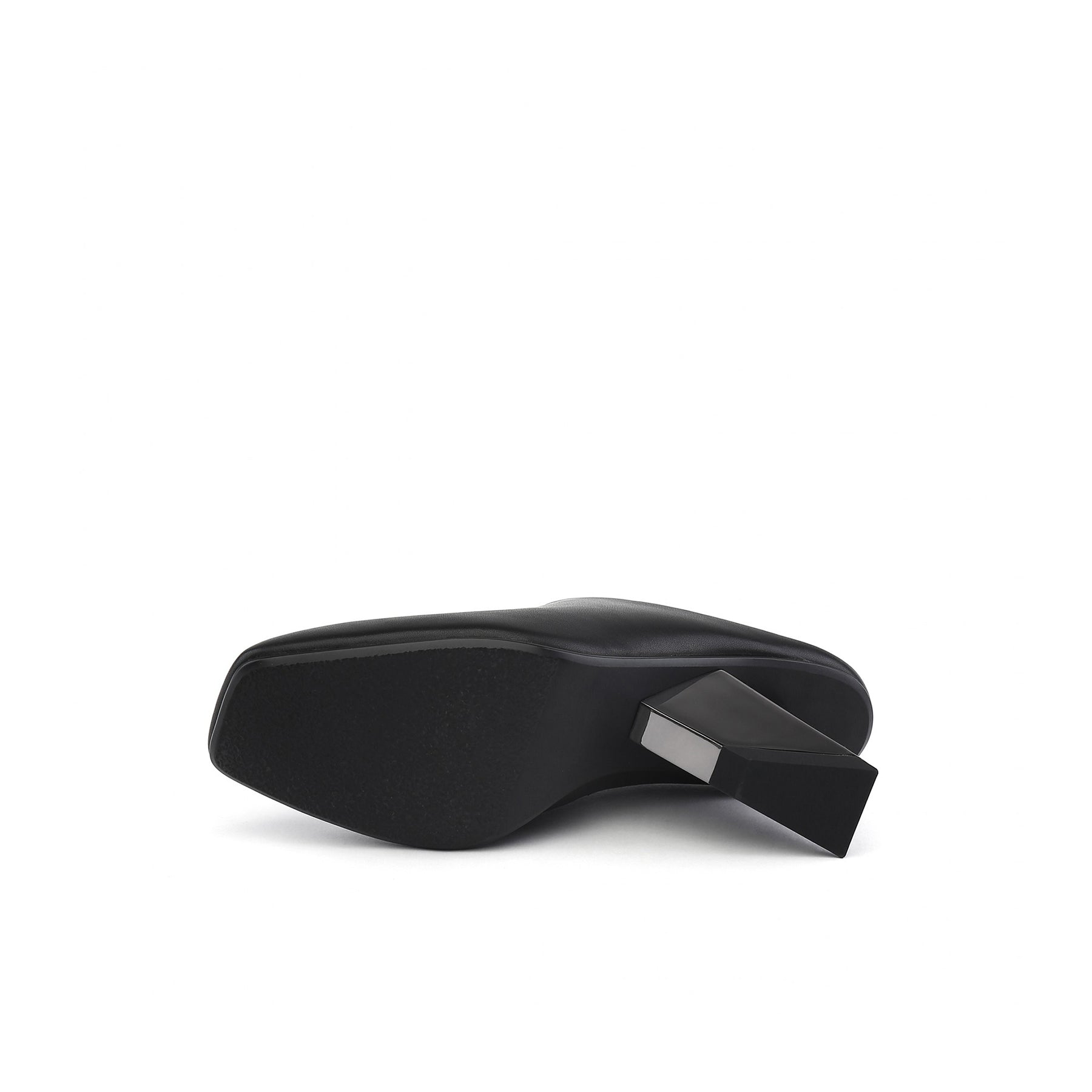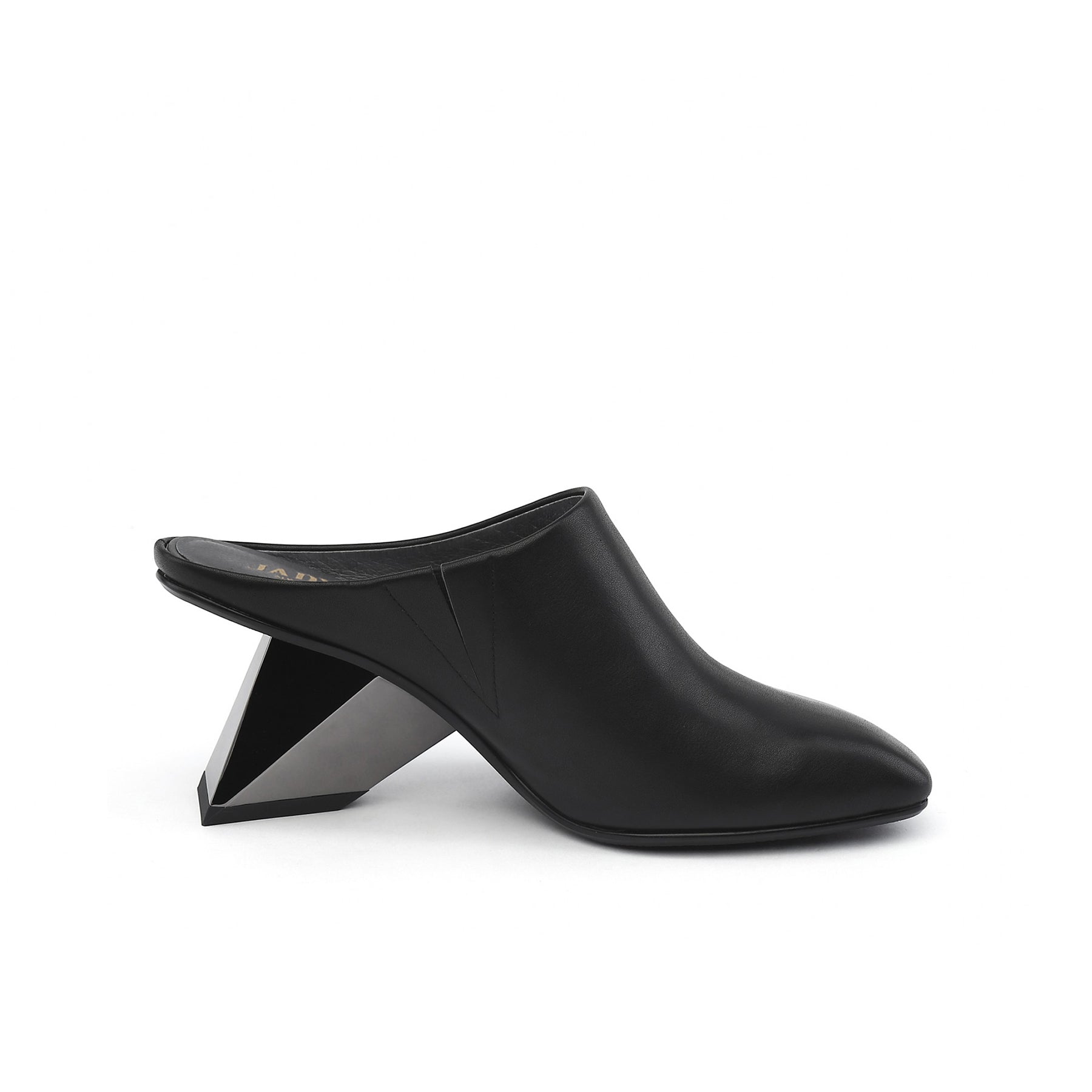 • The angular gravity block heel creates a striking architectural illusion that feels straight off a fashion week runway