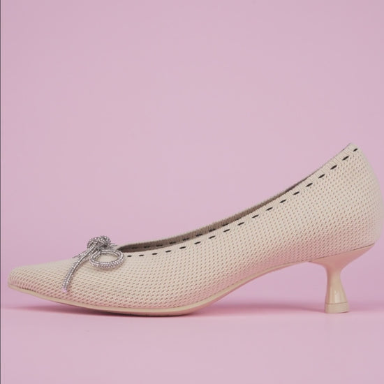 The Elegant Rhinestone Bow Pointed Toe Pumps feature a sleek pointed toe, a delicate rhinestone bow, and a 4.5cm kitten heel, these rhinestone pumps are graceful, feminine, and effortlessly chic.