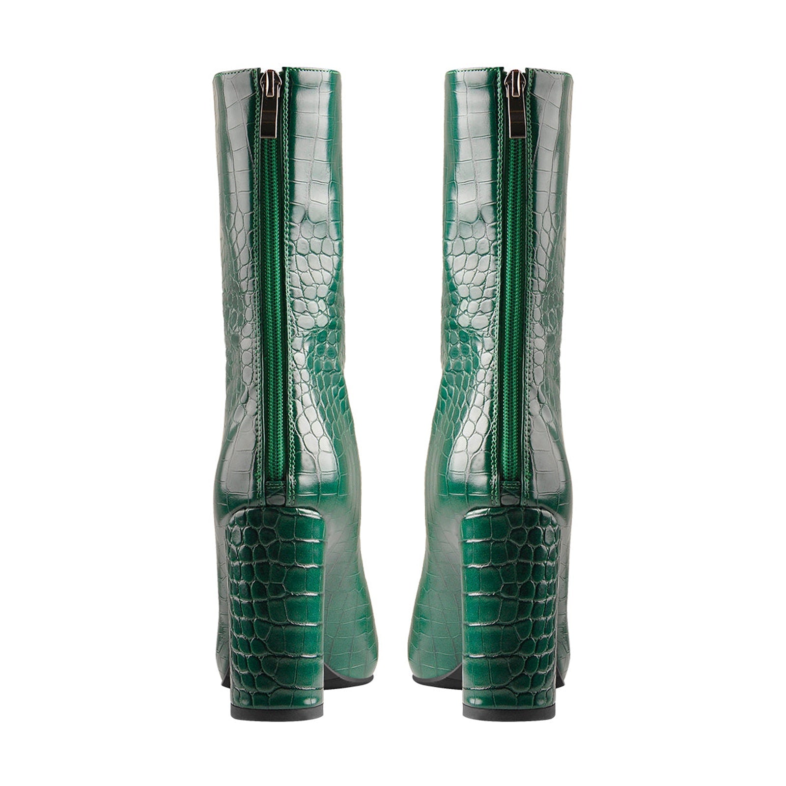 Release your inner power player with these Faux Animal Leather Boots, crafted in a striking croc finish that’s equal parts fierce and refined. With their sculptural silhouette and bold textural appeal, these boots make a fearless fashion statement that’s impossible to ignore. They’re made for women who walk tall, dress louder, and own every room they enter.