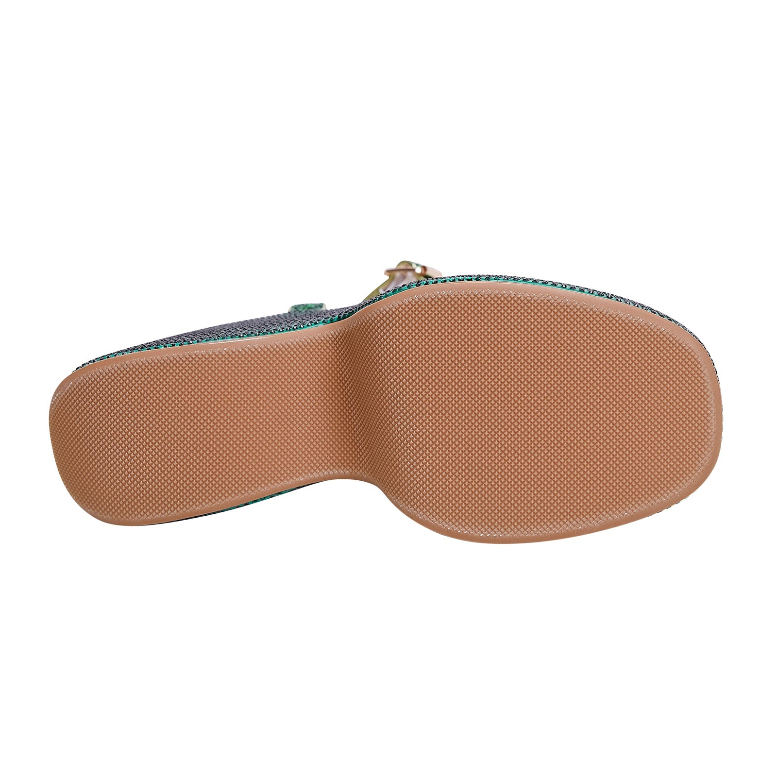 Festive Green Rhinestone Open Toe Wedge Sandals JR6022