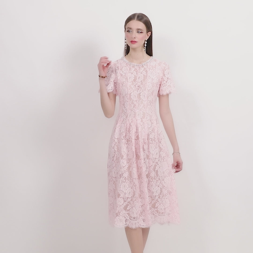 Soft, romantic, and effortlessly refined, the Flamingo Pink Sheer Floral Lace Dress is a dreamy ode to elegance in full bloom. With its vintage charm and contemporary silhouette, this dress invites you to step into a world of subtle sophistication and delicate detail.