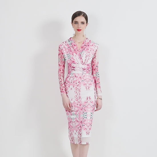 Like a fresh bouquet wrapped in couture, the Floral Pink Plunging Fitted Garden Party Midi Dress is your ticket to blooming with style. Designed for women who love their florals bold and their silhouettes flattering, this piece brings a garden fantasy to life with a polished, fashion-forward twist.
