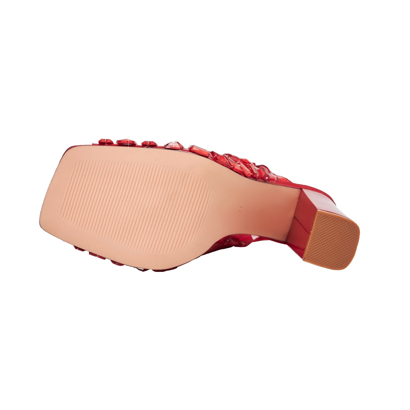 Turn up the heat and the sparkle with the Gem-Encrusted Mesh Open-Toe Ankle Sandal Boots, a sizzling blend of bold color, breathable glamour, and high-fashion edge. Radiating with jewel-like embellishments and set on a sturdy block heel, these fiery stunners are made to shine all day and dazzle all night.
