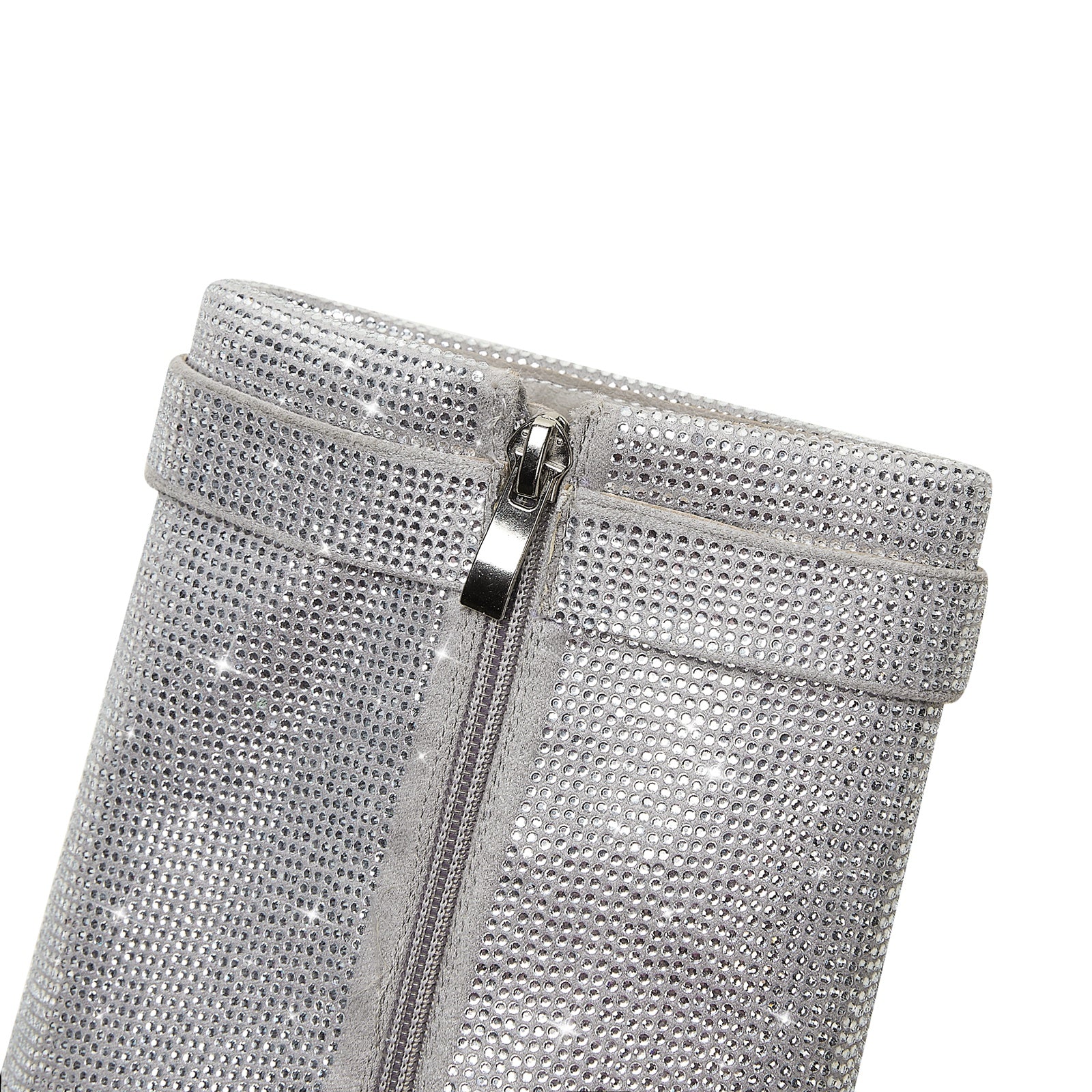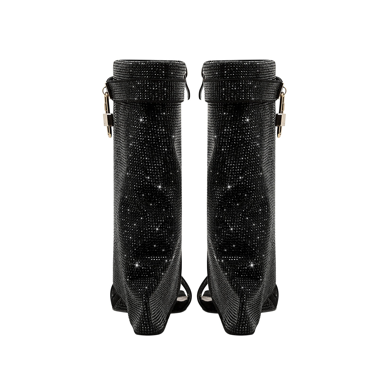Style these rhinestone sandal boots for women with a sleek bodycon dress, thigh-high slit gown, or an oversized blazer and micro shorts for a fashion-forward silhouette. It’s wearable art that turns every sidewalk into a runway. Get the Glittery Rhinestone Square Toe Mid High Sandal Boots from Jady Rose by 0cm.