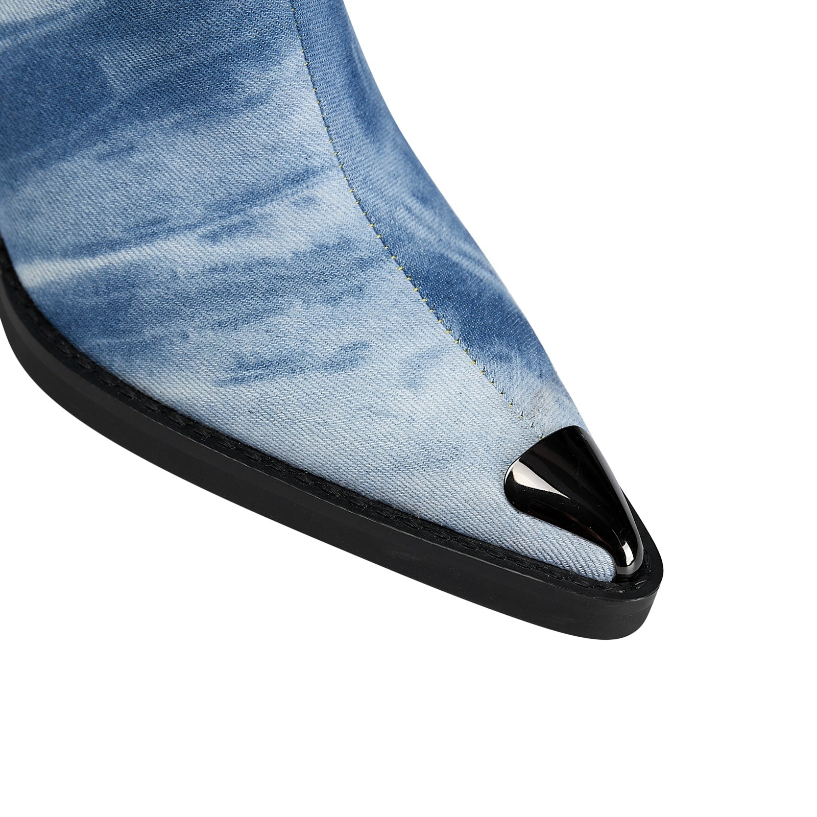 Western meets street in the Light Blue Denim Chain Embellished Knee High Boots, a rebellious remix of rodeo flair and downtown cool. With tie-dye washed denim, sleek leather trim, and a silver chain that drapes with attitude, this boot is made for rule-breakers who ride to their own rhythm.