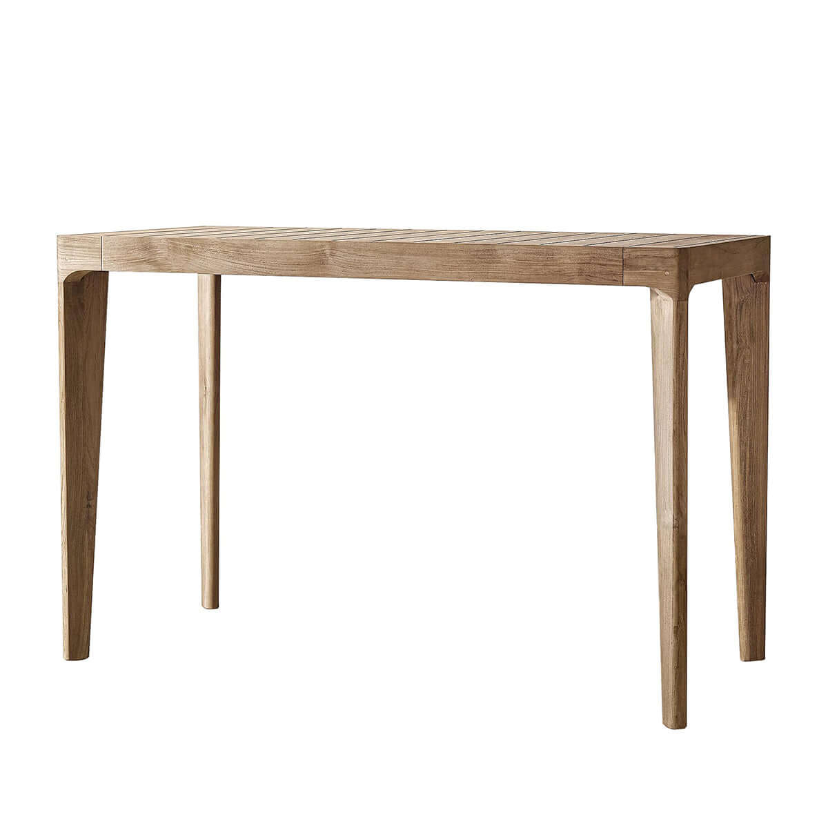 Made from solid teak, the Malta Teak Bar and Counter Stool leverages the natural resilience of this durable wood. Teak's high oil content and dense grain allow it to resist moisture and decay, making it ideal for outdoor use. As it ages, the teak bar stool develops a silver-grey patina, enhancing its character and structural integrity, embodying the principle of materials maturing over time.