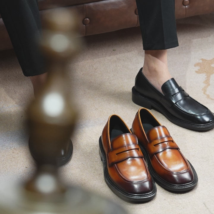 The Men’s Calfskin Gradient Leather Loafers with Bold Reinforced Straps embody timeless elegance with a modern edge, crafted for men who effortlessly transition between formal and semi-formal settings. With their structured silhouette and distinguished strap detailing, these loafers exude an air of quiet authority, making them perfect for boardroom meetings, corporate dinners, or sophisticated social gatherings. Paired with a bespoke suit and a luxury timepiece, they ensure a first impression marked by refinement and presence.