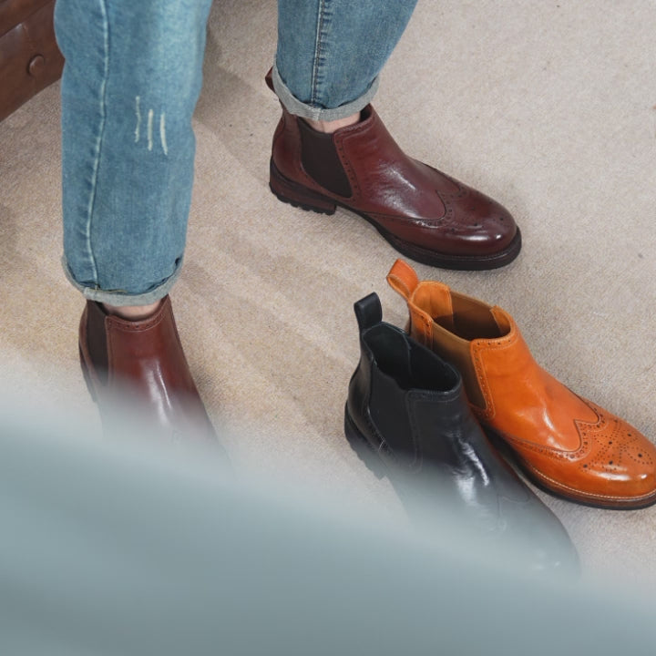 Men’s Chelsea Boots with Wingtip Brogue Detailing and Rugged Soles
