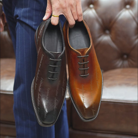 The Men’s Elite Leather Oxford Lace Up Shoes with Artistic Scritto Finish are a testament to refined craftsmanship and timeless elegance, designed for the modern gentleman who commands presence in every setting. The artistic Scritto detailing across the polished calfskin creates a distinctive expression of sophistication, making these Oxfords the ideal companion for corporate events, boardroom meetings, and formal occasions where first impressions matter most. Paired with a bespoke suit, a luxury timepiece, and tailored confidence, they complete a look that exudes authority and style.