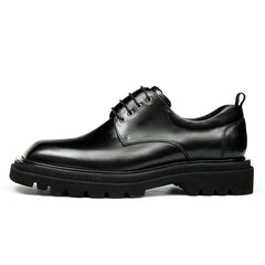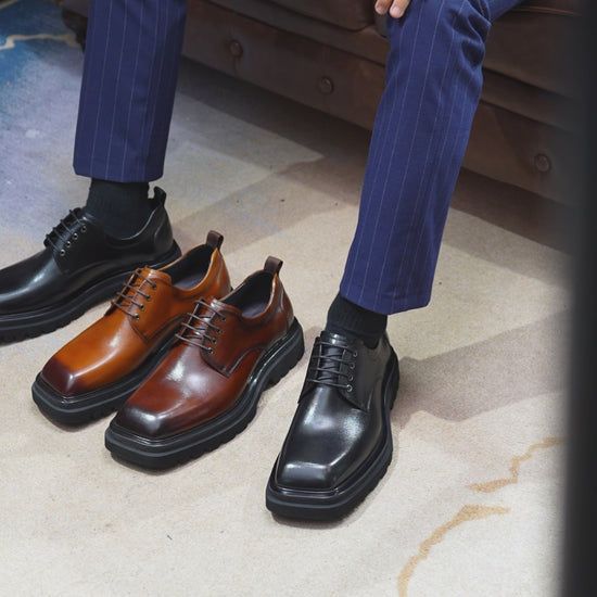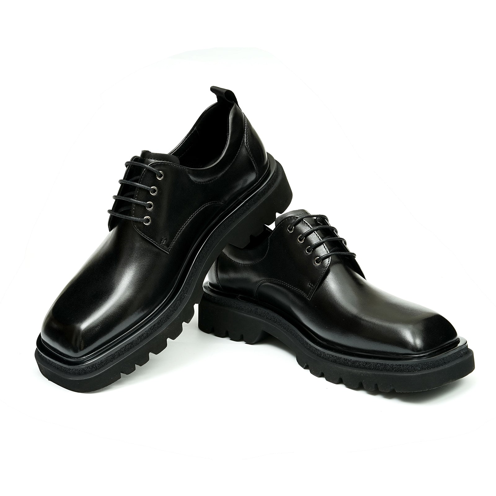Men’s Glossy Square Toe Polished Calf Leather Lace Up Shoes