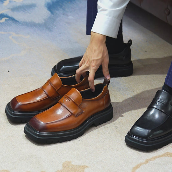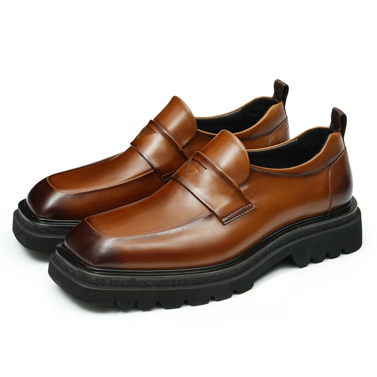 Men’s Glossy Square Toe Polished Calf Leather Shoes