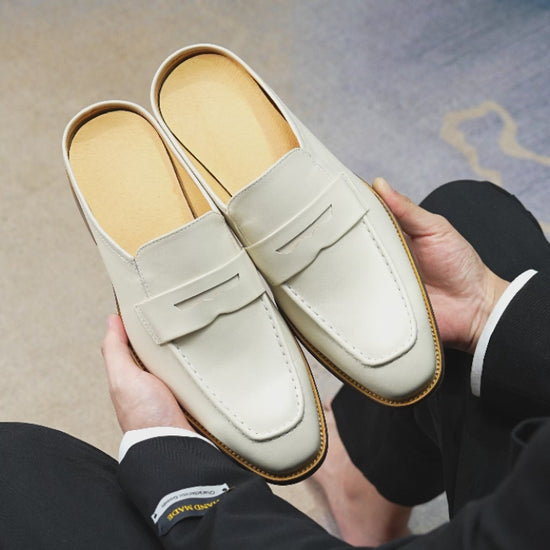 Pair these leather mules for men with a linen suit and muted accessories for a Riviera-inspired vacation look, or style them with tailored trousers and a crisp shirt for boardroom-ready refinement. For semi-formal evenings, combine them with monochromatic separates for a sleek, understated statement. Get these Men’s Posh Cream Leather Mules from Neweyesee by 0cm.