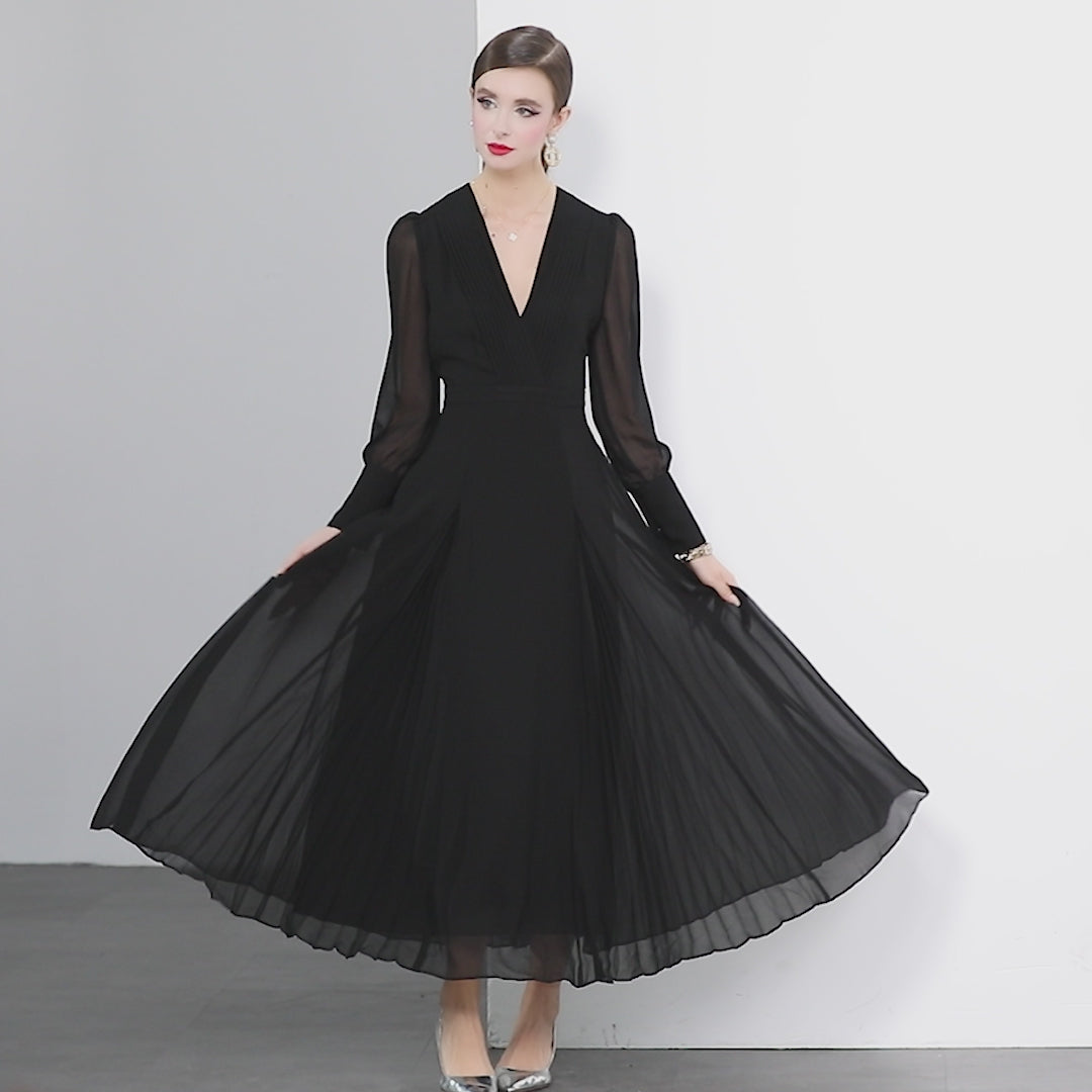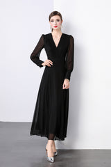 Pair this black ruched maxi dress for women with silver stilettos and chandelier earrings for an ultra-chic formal ensemble. The rich black hue makes it a wardrobe classic, flattering all complexions while offering endless versatility. Women should invest in the Midnight Black Long Sleeve Ruched Waist V-Neck Maxi Dress not only for its effortless elegance but also for its ability to create unforgettable, elegant moments.