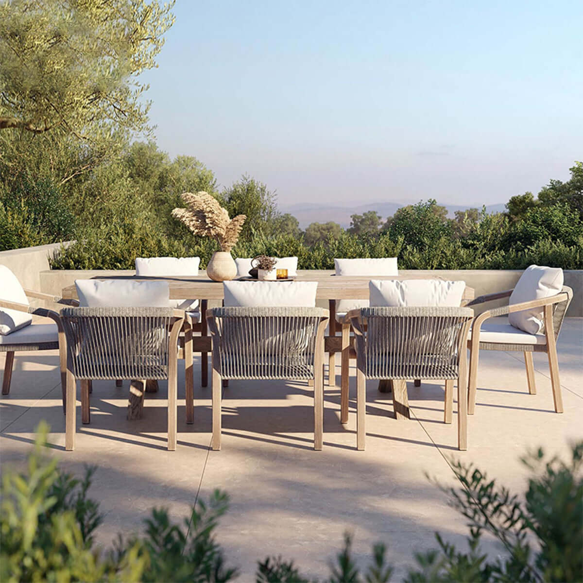 Designed to age beautifully, it evolves over time, becoming more distinctive. This long table serves as a focal point in both indoor and outdoor spaces. redefining elegance and entertainment with the Monte Crossleg Long Table.