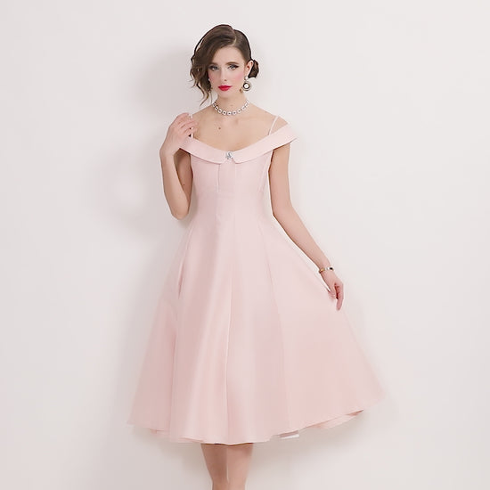 - The calf-length hem adds a retro-inspired twist, ideal for twirling through elegant events