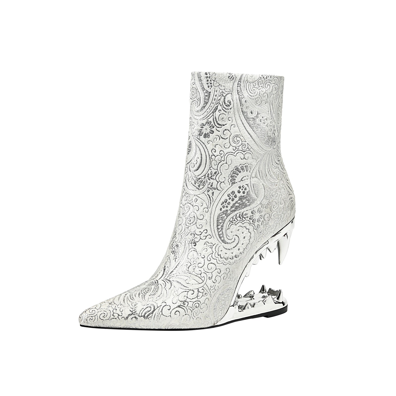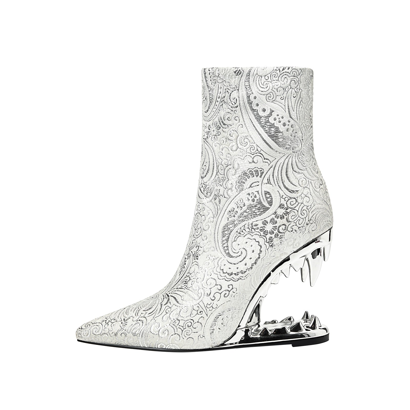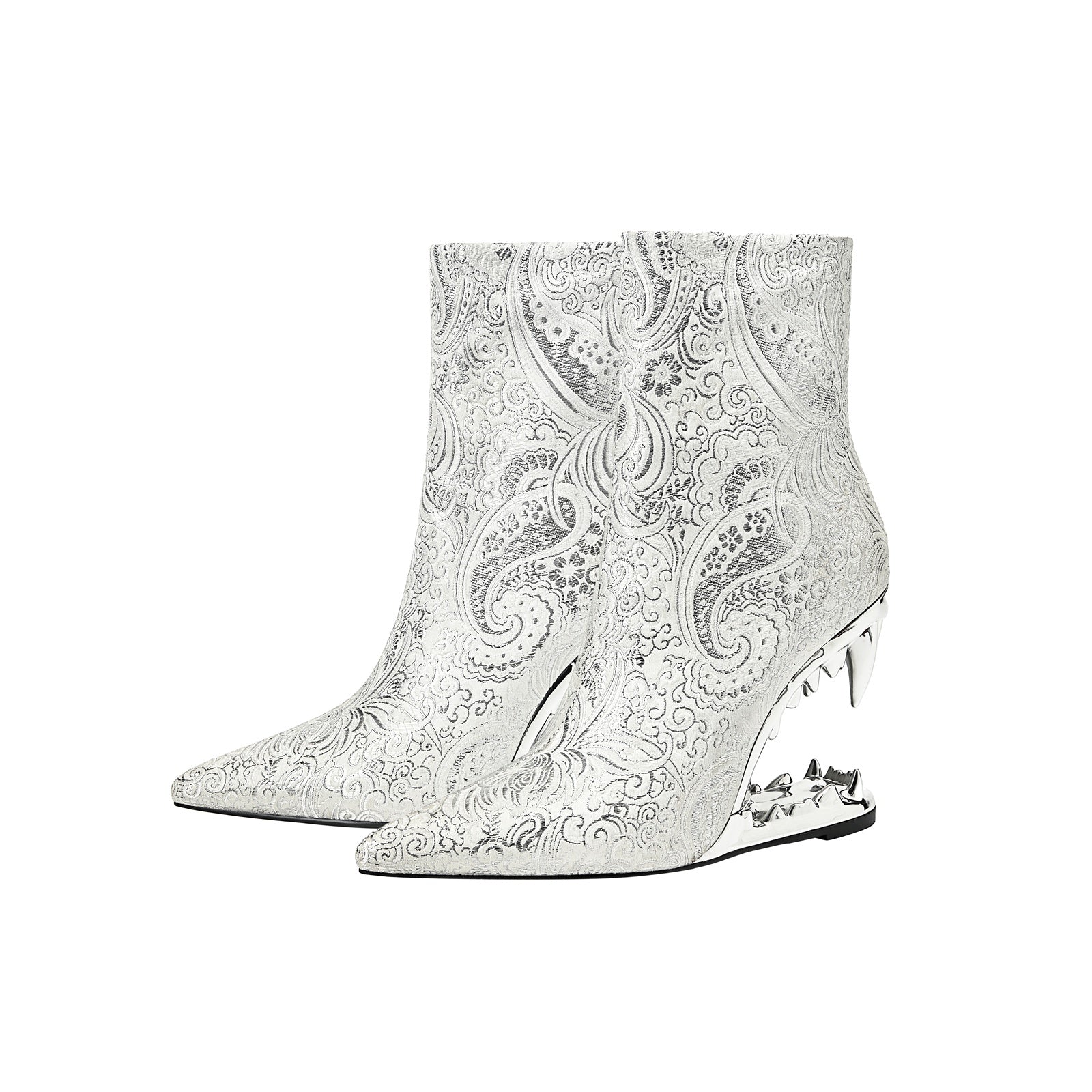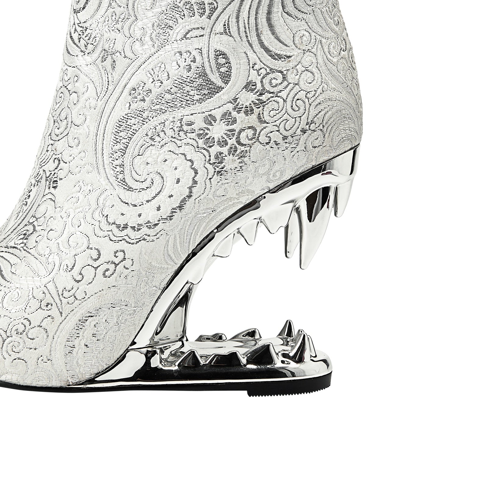 Inspired by a collision of imperial opulence and modern armor, this Paisley Encrusted Bite Heel Ankle Boots evokes the mystery of a gothic fairytale with the innovation of a postmodern runway. Whether gliding into a gallery event or turning heads at a fashion-forward soirée, these boots command the room with unapologetic elegance.