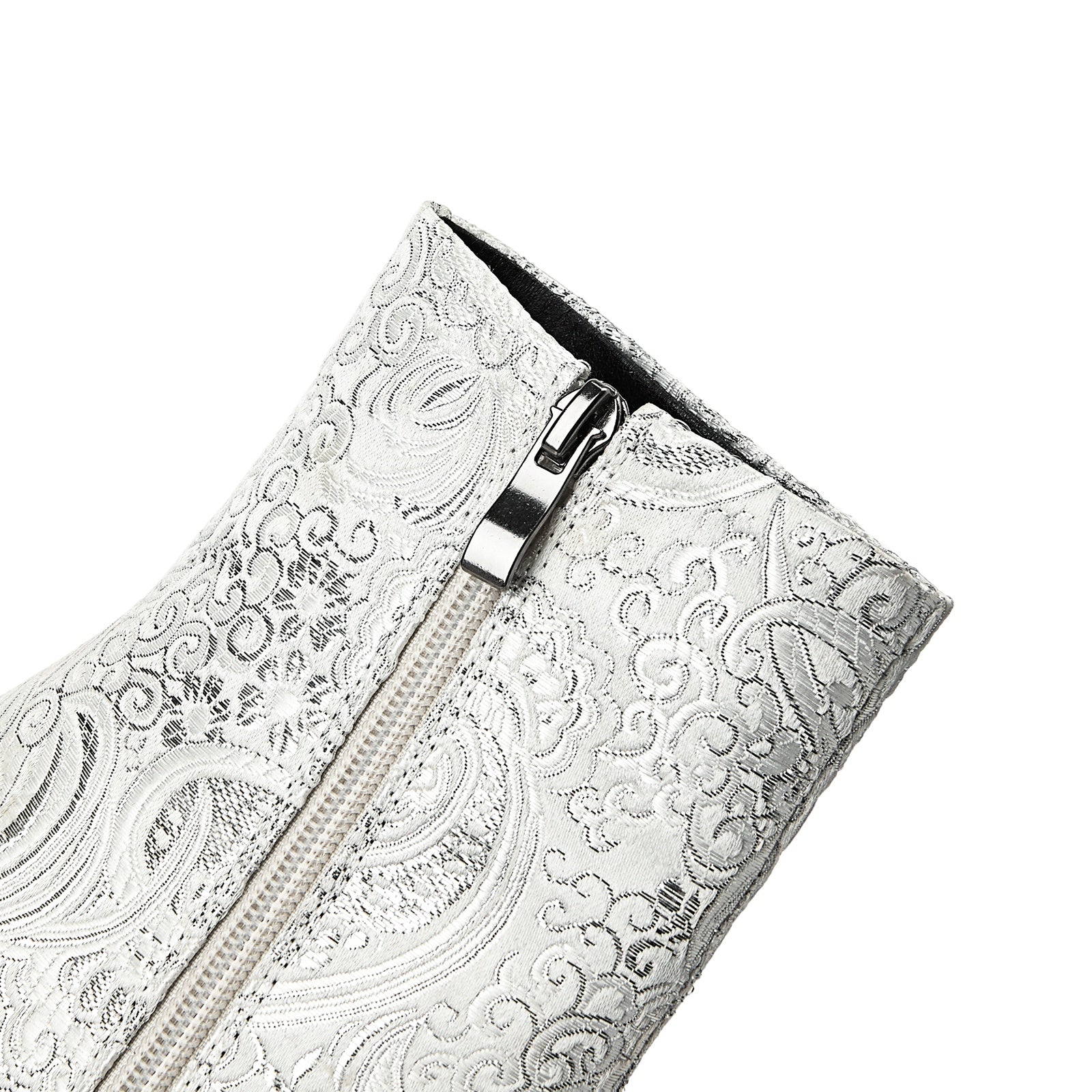 Style these paisley ankle boots for women a sculptural metallic mini dress and chrome accessories for a runway-ready look. Opt for a sleek white tailored jumpsuit to let the boots shine as your statement piece. Get the Paisley Encrusted Bite Heel Ankle Boots from Jady Rose by 0cm.