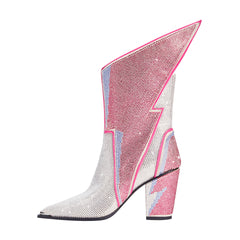 Sparkle like a star and shine with sweet electric charm in the Pink Lightning Gem Embellished Ankle Boots, a dreamy blend of girl power and glam. With shimmering crystal accents and soft pastel lightning bolt details, these boots channel a magical mix of glitter pop and playful femininity, made for girls who light up the world with style and sparkle.