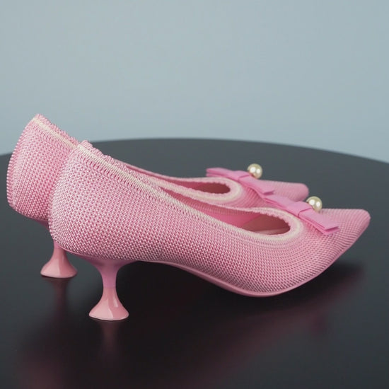 A timeless silhouette with a fresh, youthful twist, these Pointed Toe Pearl Fabric Stiletto Heels redefine modern elegance. Delicate yet statement-making, they are crafted for the woman who effortlessly combines sophistication with a playful charm. Featuring a sculpted wine-glass heel, a luxurious knit upper, and a dainty pearl-accented bow, these pointed-toe stilettos for women are the epitome of Parisian-inspired femininity.