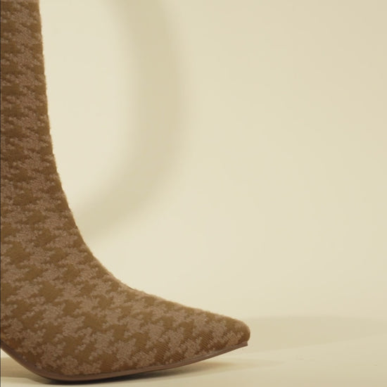 These Pointed Toe Stiletto Heel Stretch Ankle Boots are designed for women who appreciate effortless elegance, these boots feature a sleek pointed toe, ultra-stretch houndstooth knit fabric, and a refined 7cm wine glass heel, making them the perfect statement piece for any wardrobe.