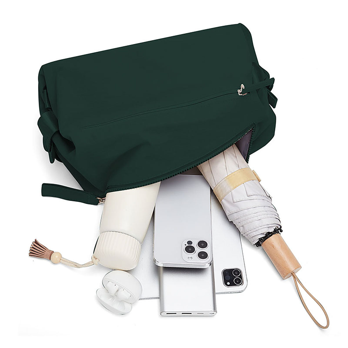 - Lightweight yet durable nylon with a water-resistant finish, keeping your belongings safe and the bag effortlessly polished