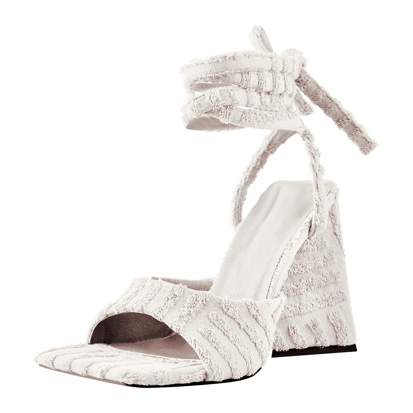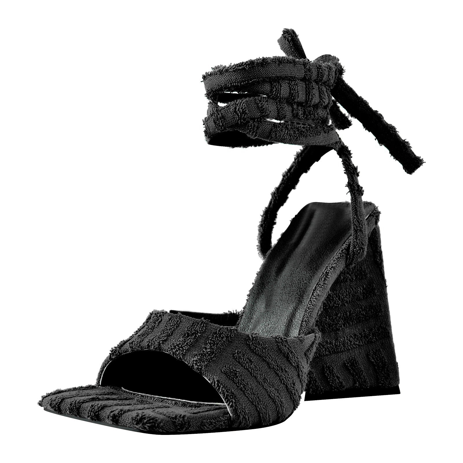 - The tie-up ankle straps add flirtatious movement while allowing for a customized, secure fit