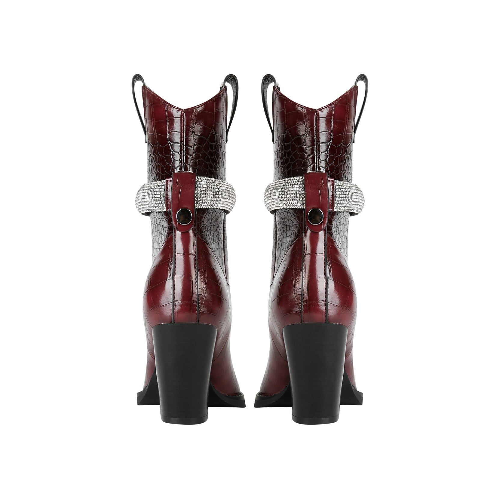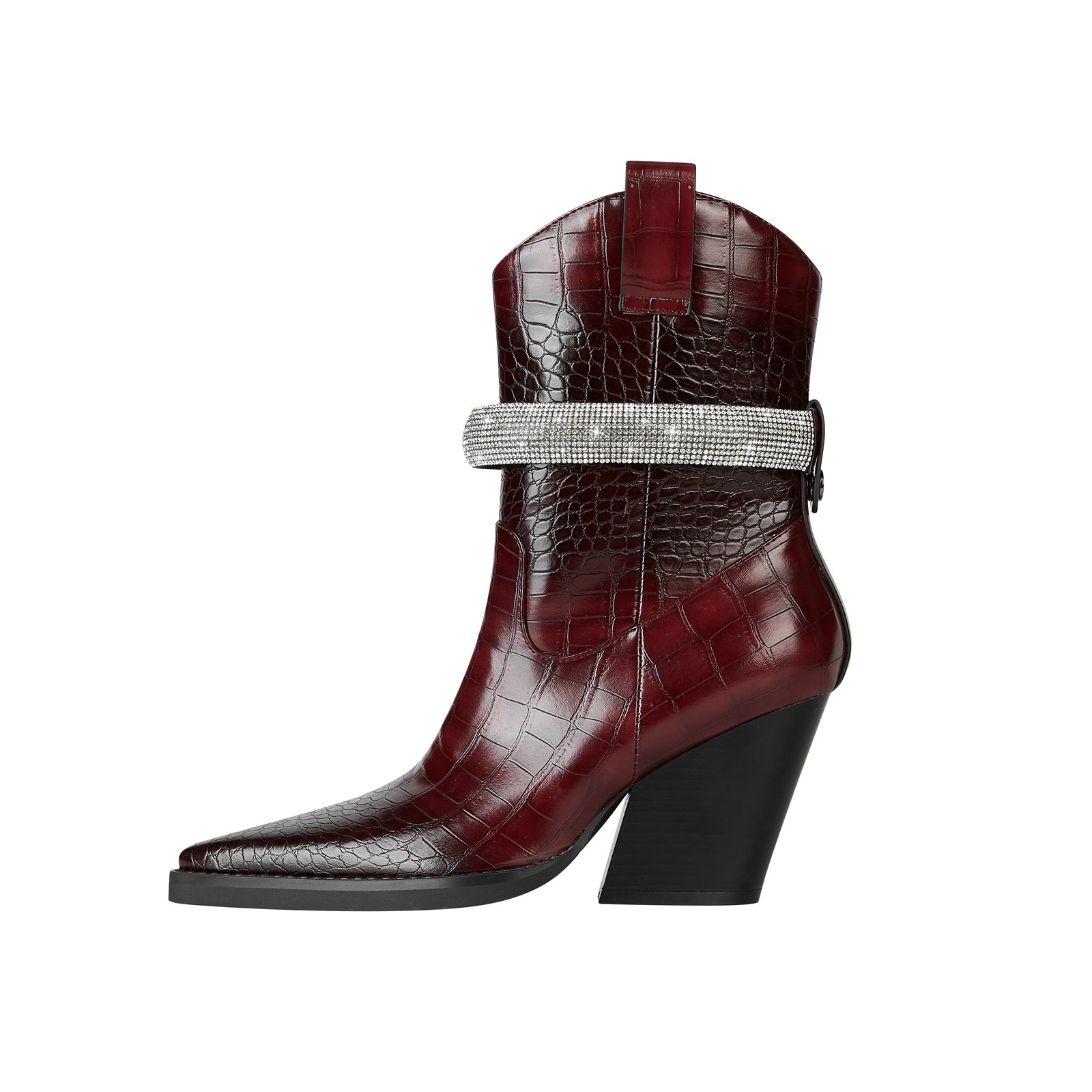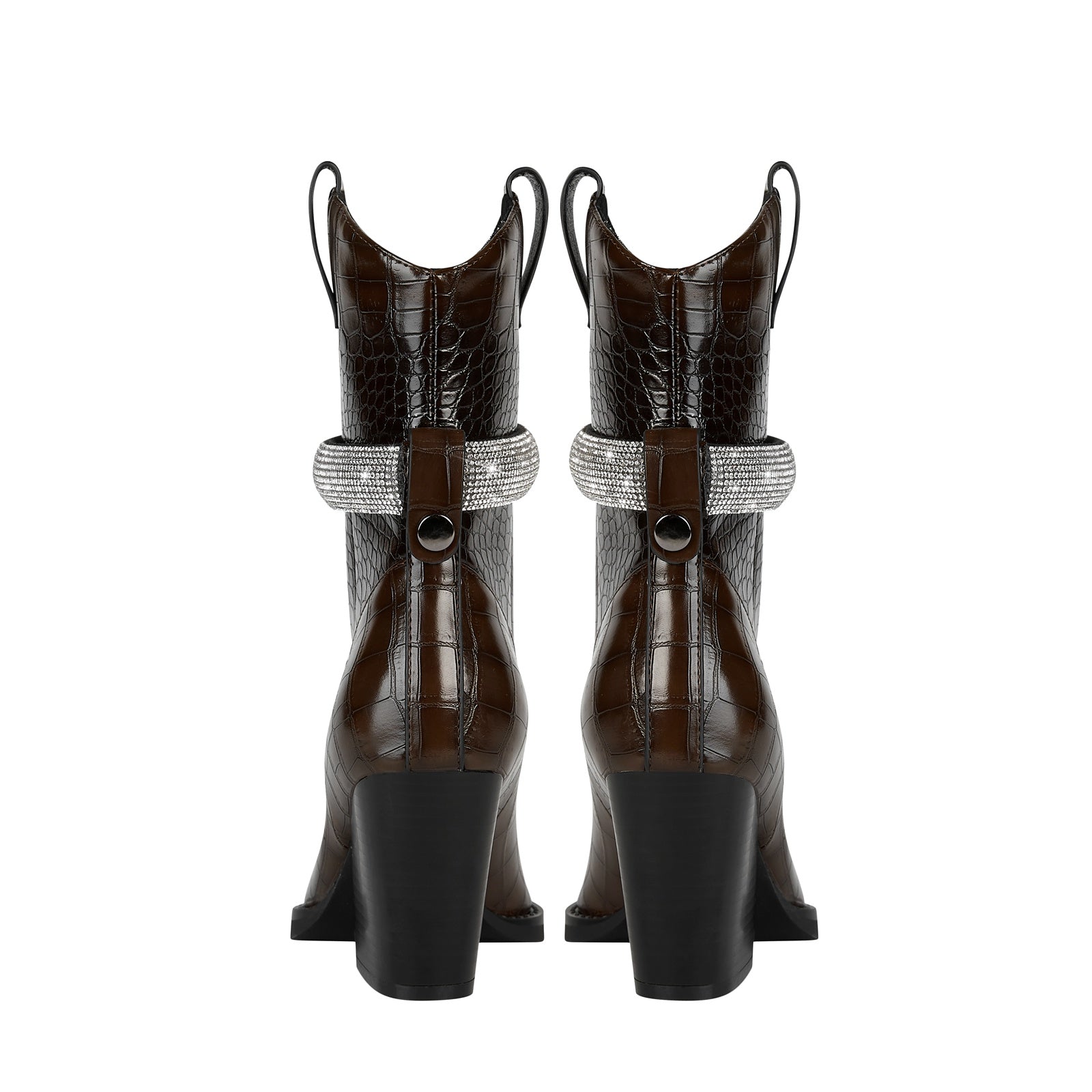 - The glossy croc texture in deep chocolate brown adds instant luxe to your western wardrobe