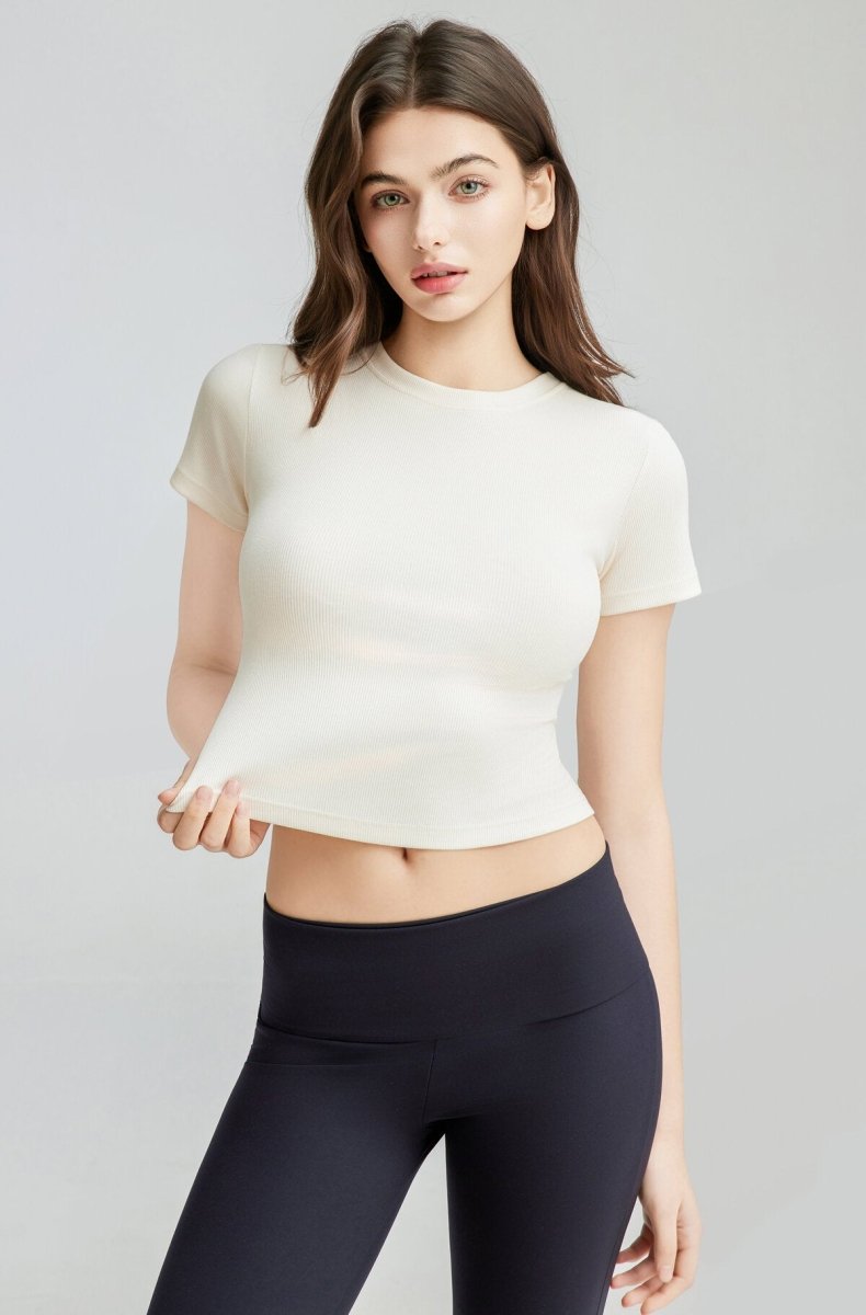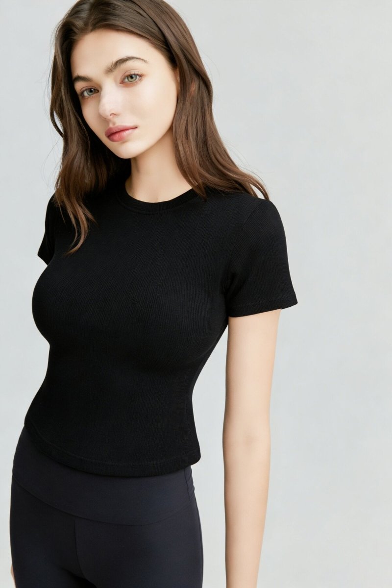 Designed for effortless everyday styling, this Ribbed Short Sleeve Built-In Padded Bra Crop Top blends comfort, support, and flattering structure in one versatile essential. Made from a high-stretch ribbed cotton-blend fabric, it delivers a soft, breathable, skin-friendly feel that hugs your body like a second skin. The slim cropped silhouette subtly highlights the waistline, creating a clean and streamlined shape whether worn alone or layered. Featuring an integrated padded bra, this top eliminates the need for extra underwear while providing gentle support and shaping. The one-piece design reduces bulk and friction, ensuring lightweight comfort for all-day wear. The classic crew neckline with elastic ribbed binding maintains its shape over time, while the standard short sleeves offer natural arm coverage without restricting movement. Perfect for pairing with yoga pants for an athleisure look, styling with jeans for daily wear, or layering under blazers and cardigans, this versatile ribbed tee adapts seamlessly to commuting, casual outings, and relaxed weekends. The breathable stretch fabric maintains its elasticity wash after wash, resisting deformation and pilling for long-lasting performance. Available in 8 colors with inclusive sizing, this easy-care essential is machine washable in cold water and designed to be a must-have staple for spring and summer wardrobes.