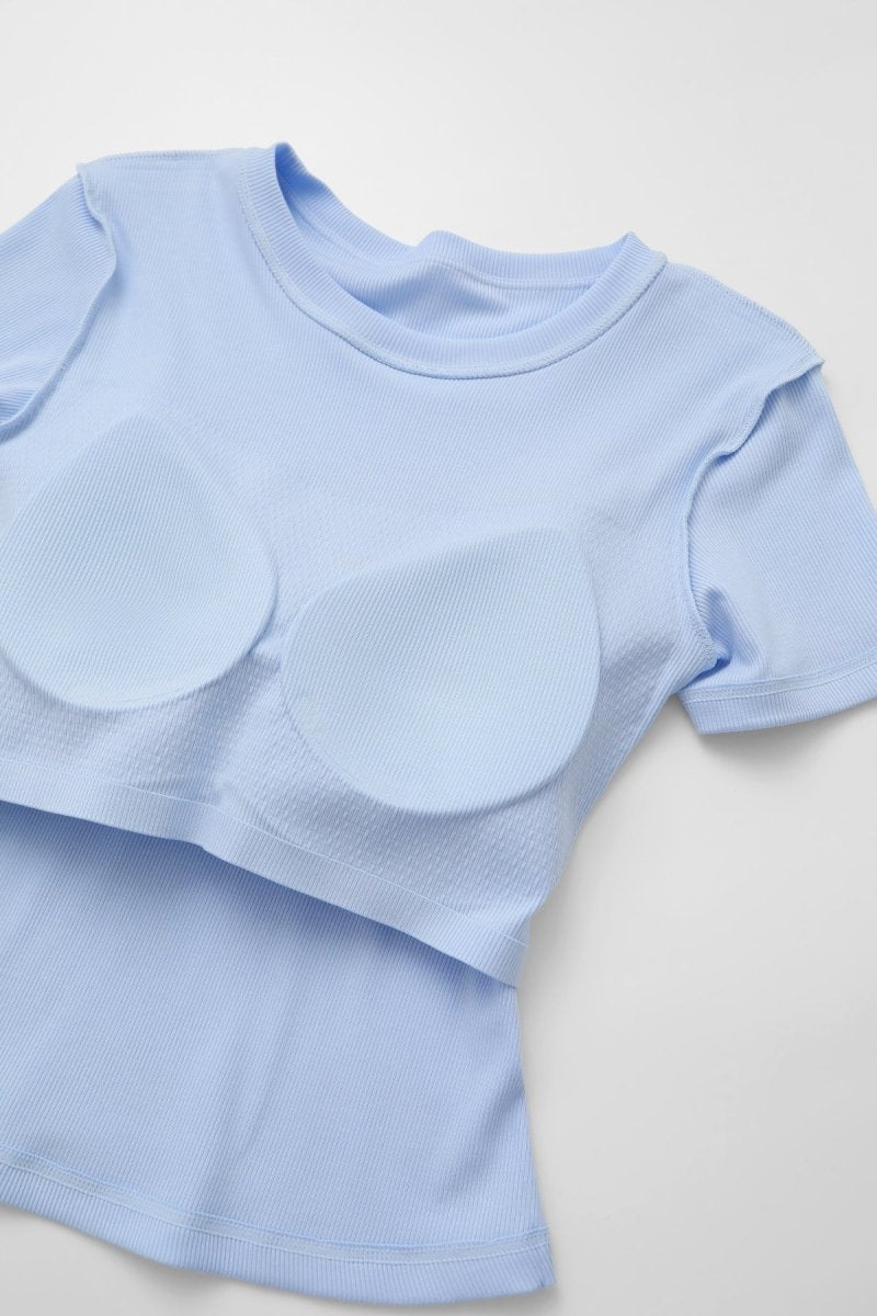 Ribbed Short Sleeve Built-In Padded Bra Crop Top