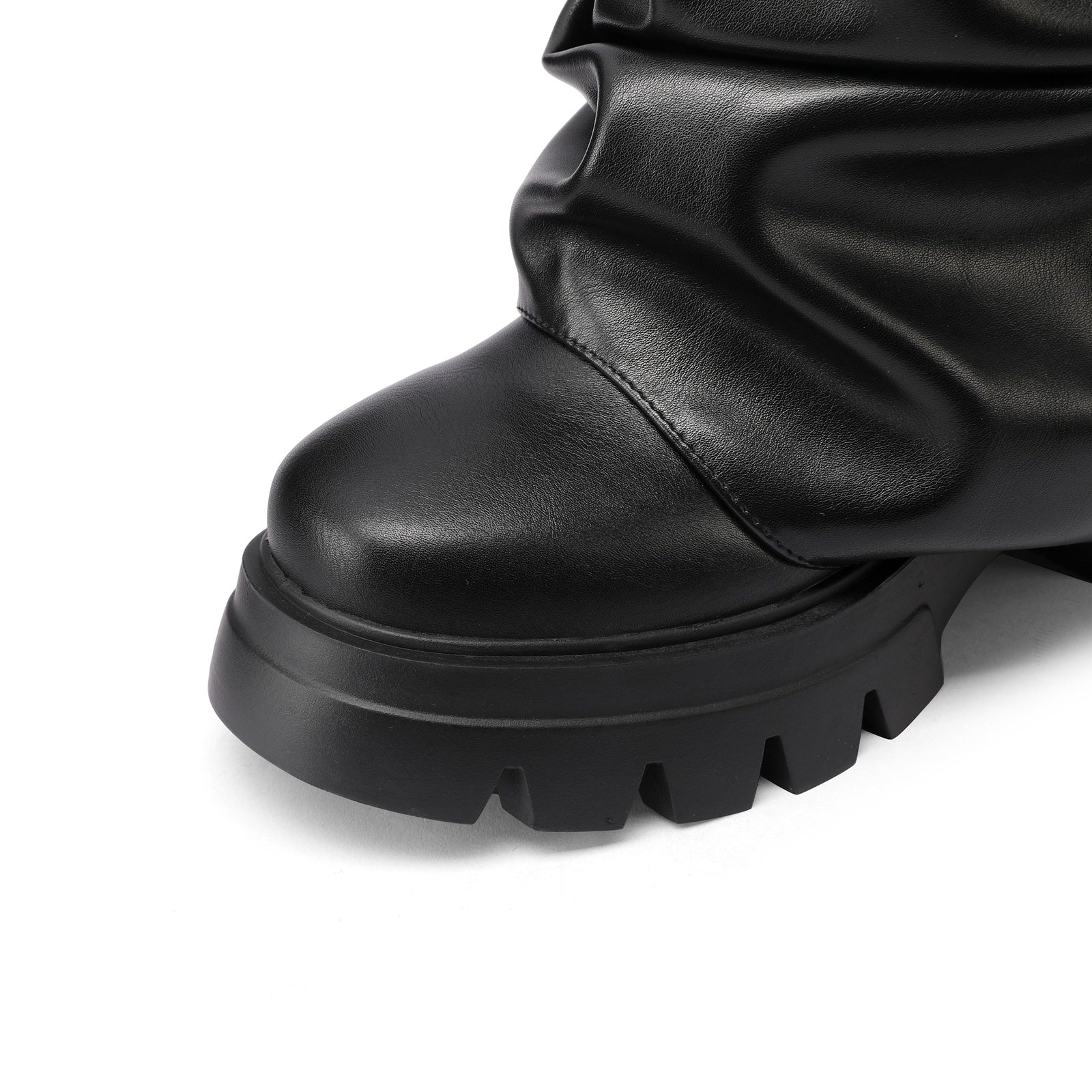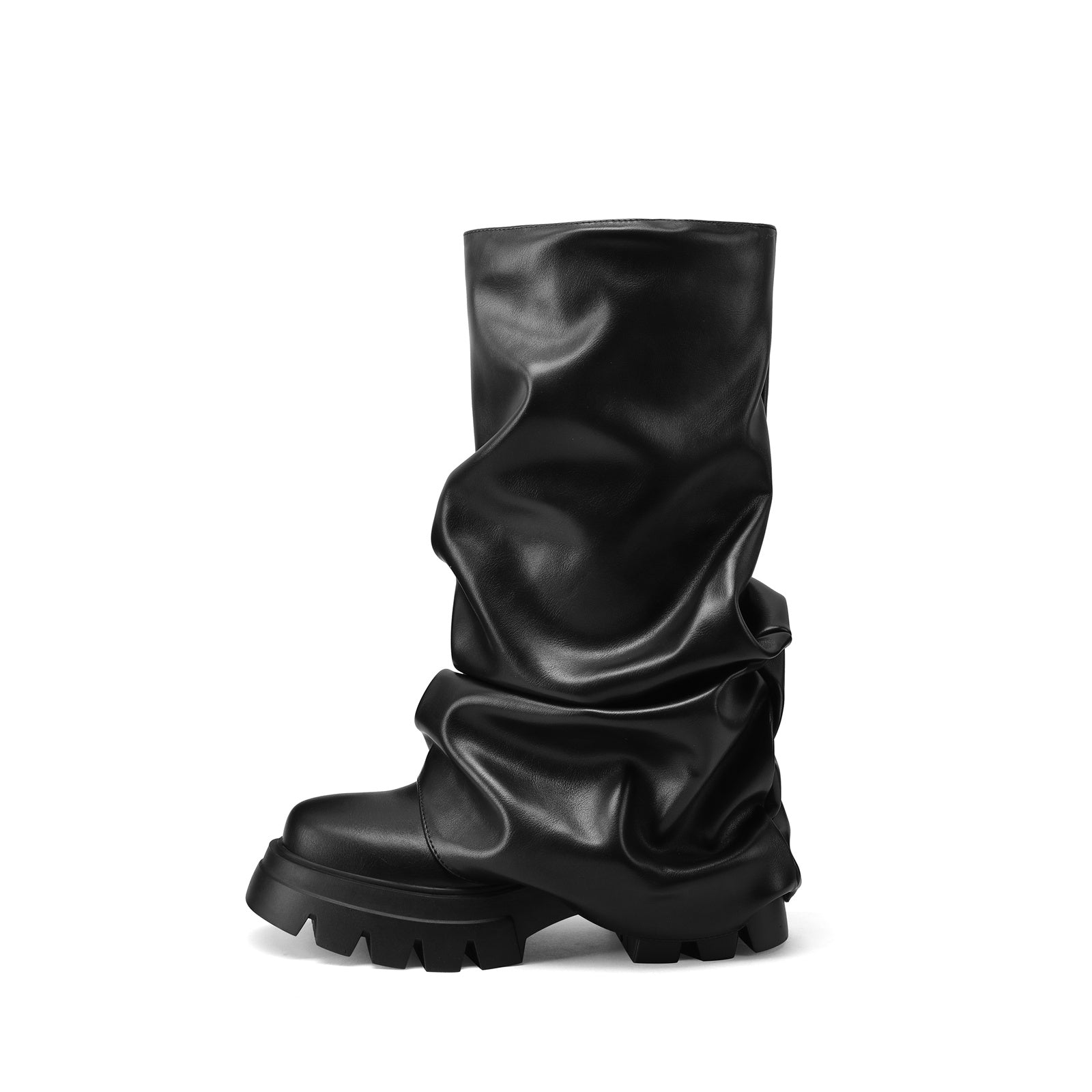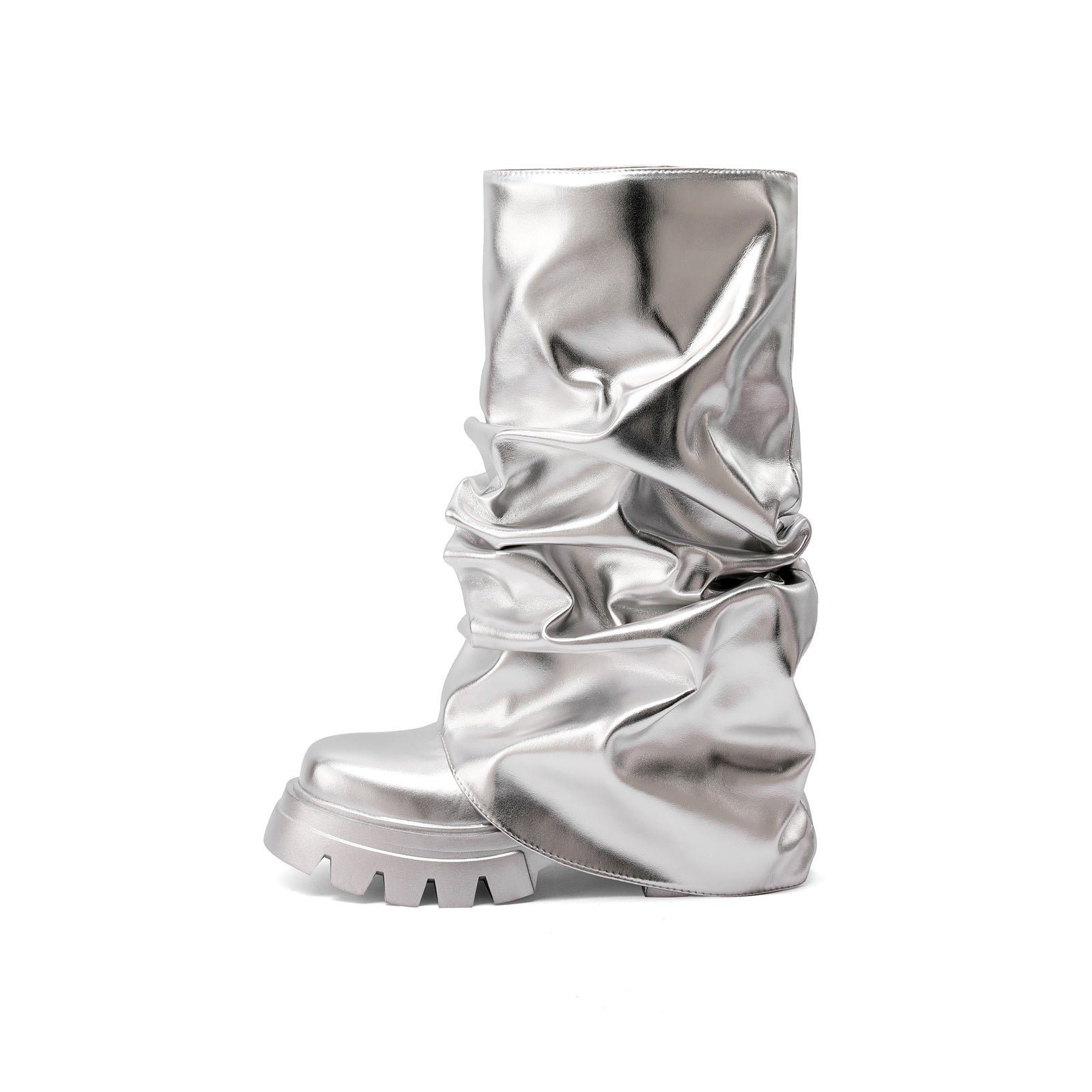 Forge futuristic fashion with the Ruched Leather Round Toe Boots, a bold collision of avant-garde volume and retro space-age glam. Featuring a high-shine metallic finish, exaggerated ruching, and chunky lug soles, these boots are made for fashion rebels who love to command attention. Effortlessly edgy yet playful, they blur the lines between runway drama and streetwear cool.