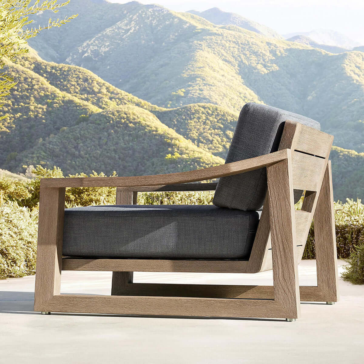 Constructed from sustainably sourced solid teak, the Sebastian Resort Sofa not only withstands environmental elements but matures gracefully, developing a soft silver patina that enriches its natural beauty over time. Plush, quick-dry cushions ensure enduring comfort, while the sofa’s structured silhouette provides visual weight, grounding outdoor settings with sculptural simplicity.