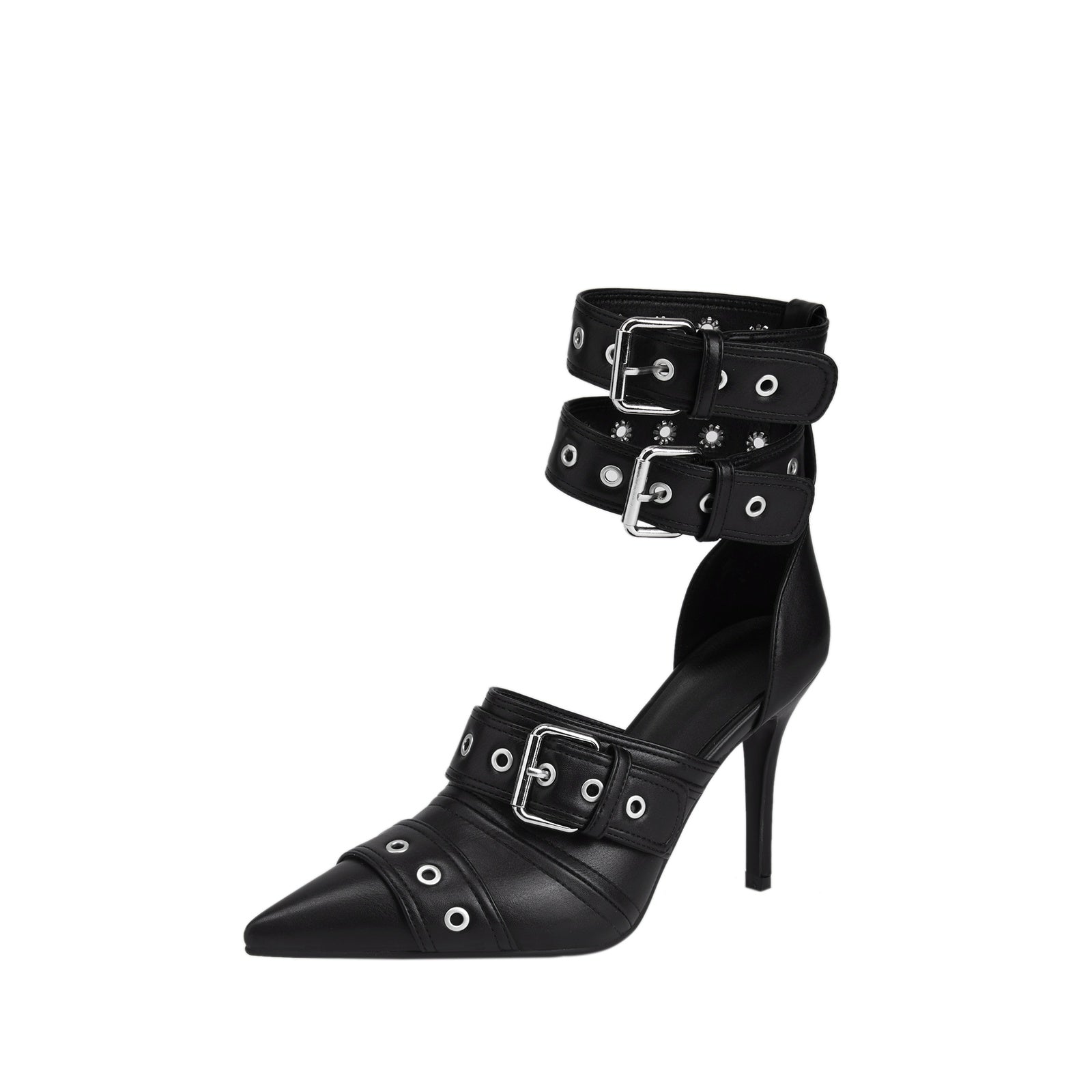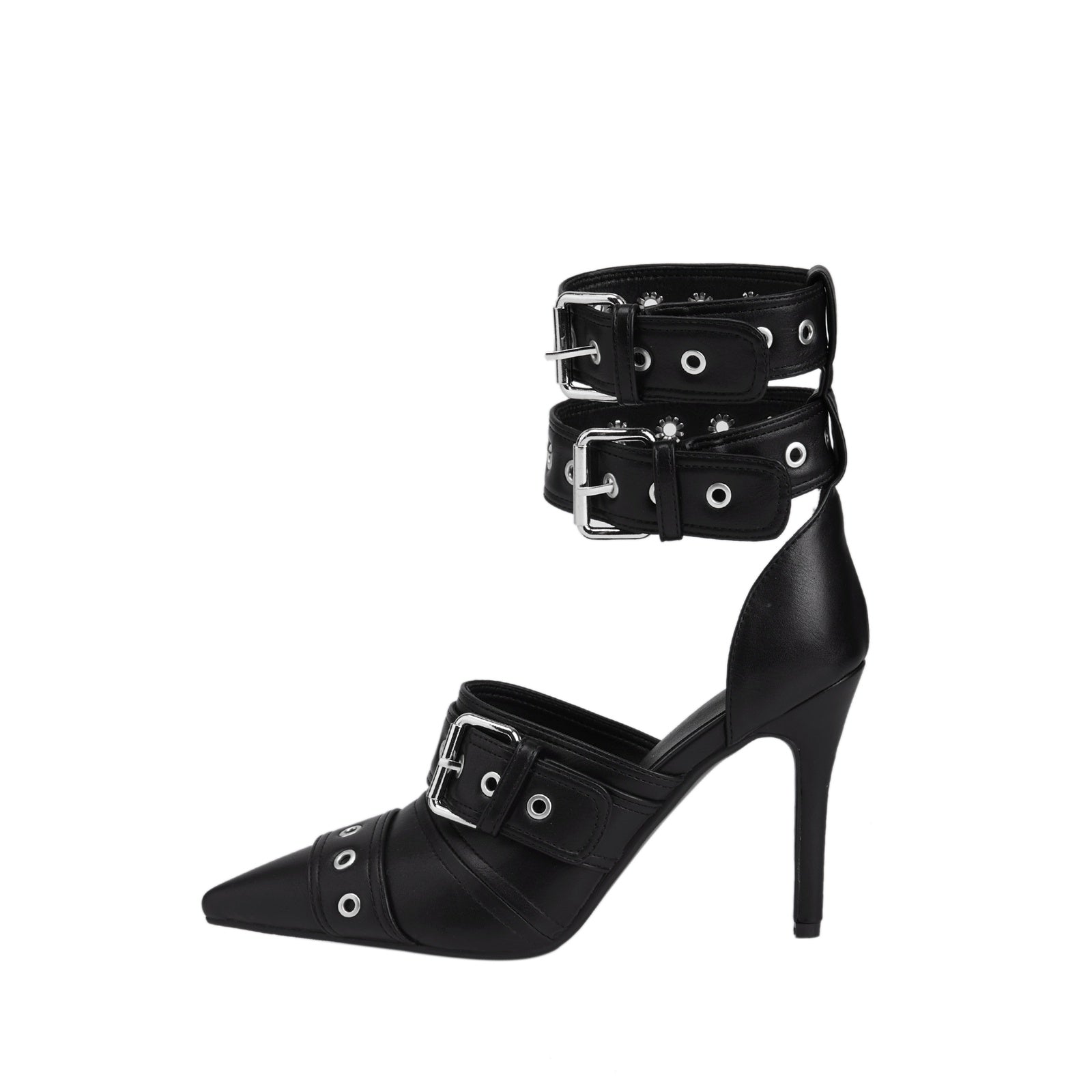 Sexy Black Pointed Toe Buckle Ankle Strap Stiletto Heels