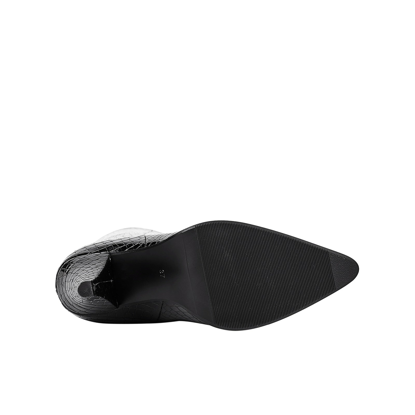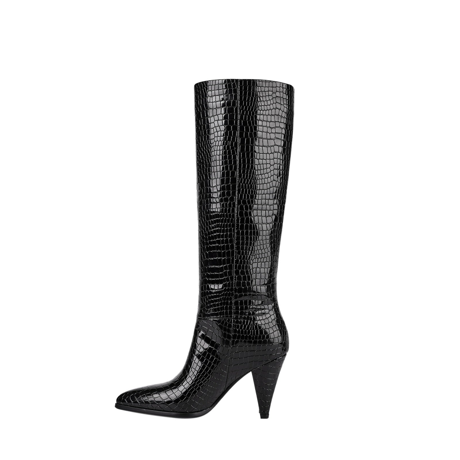 - The high-gloss croc-embossed texture exudes confidence and luxury, making every step feel like a statement