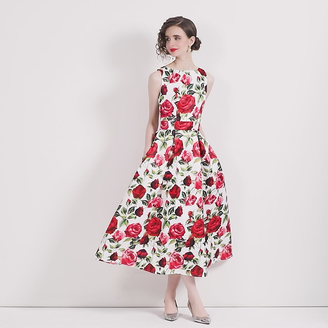 Wrapped in the timeless beauty of blooming roses, this Sleeveless Form Fitting Rose Floral A Line Dress is pure poetry in motion, evoking the warmth of sunlit gardens, handwritten notes, and the delicate thrill of romance. With every petal perfectly placed, it’s a dress designed to make you feel like the main character in your own floral fairytale.