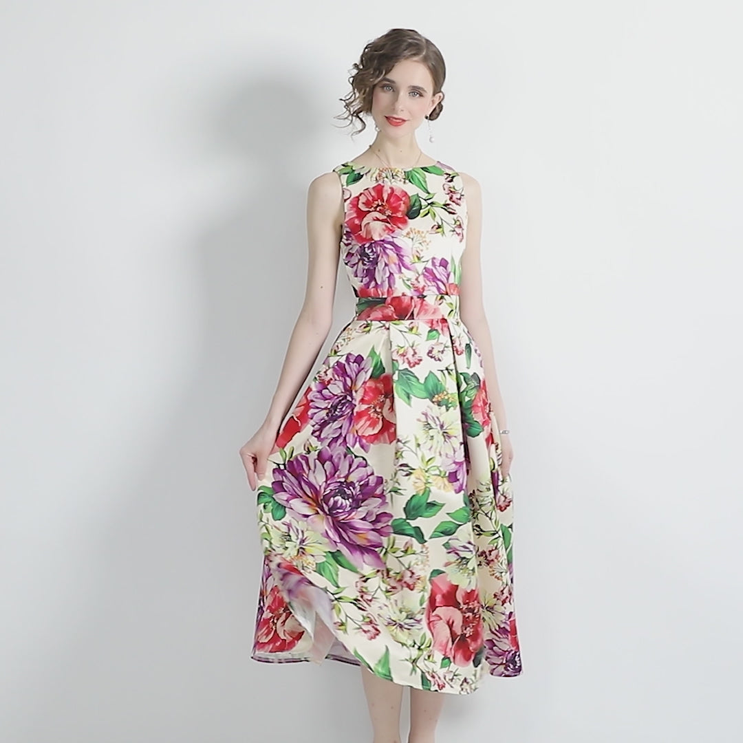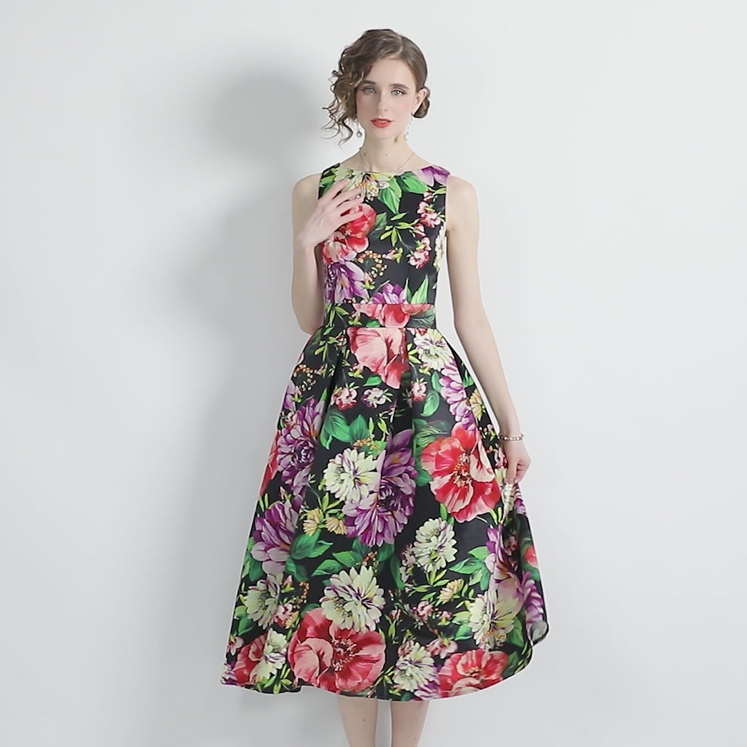 Pair this floral, sleeveless dress for women with silver or nude heels for a classic look, and complete the look with a sleek updo and drop earrings to accentuate the neckline. Get the Sleeveless High Waist Structured A-Line Dress from DZA by 0cm.
