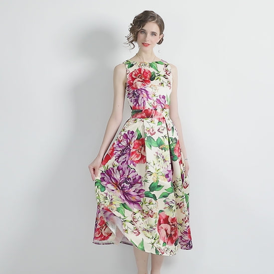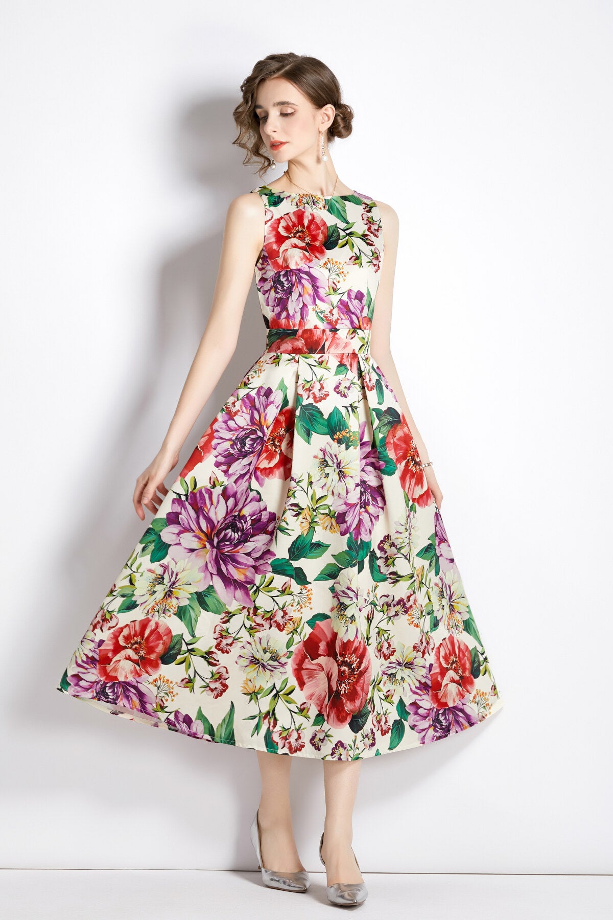 The Sleeveless High-Waist Structured A-Line Dress feels Bold, romantic, and unapologetically feminine, bringing your garden party fantasy to life. Drenched in vibrant florals and tailored with timeless elegance, it’s the kind of piece that makes an entrance without saying a word. From the sculpted bodice to the voluminous skirt, every detail is made to flatter, flow, and flourish.